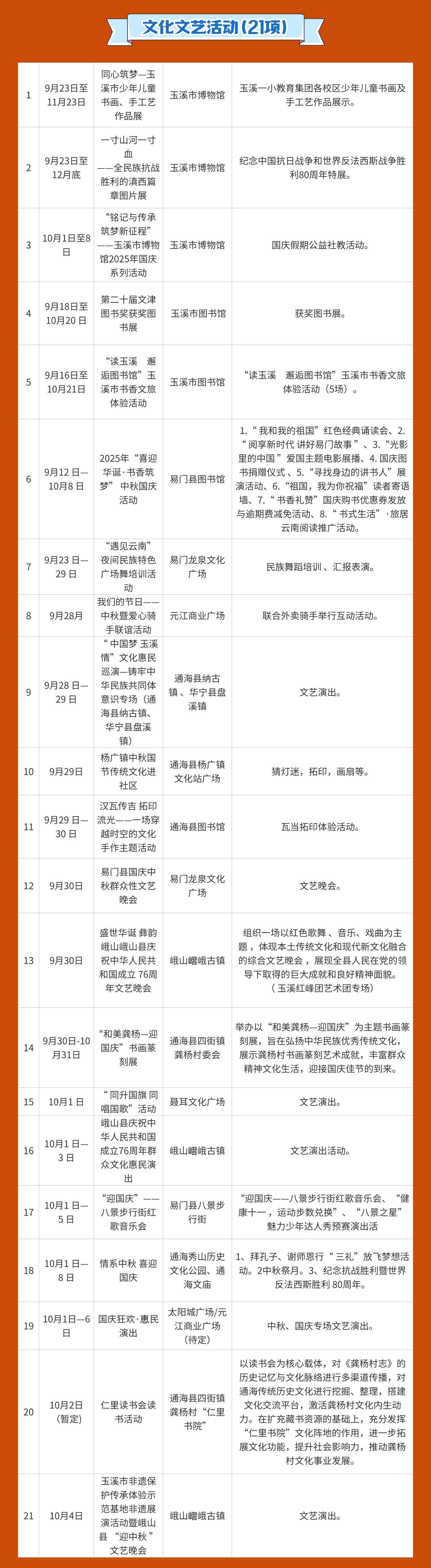 玉马双节畅玩玉溪丨中秋国庆畅游玉溪,60场精彩活动等你来体验!