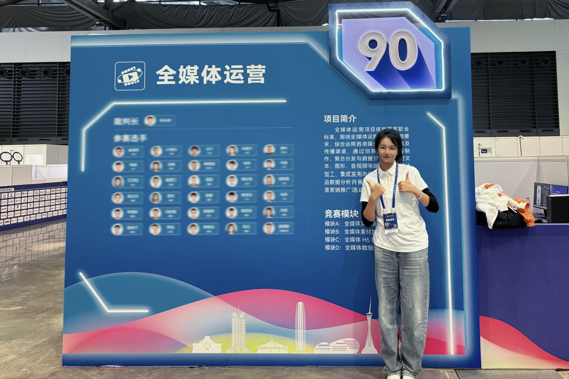全国技能大赛是我国规格最高、项目最多、规模最大、水平最高的综合性职业技能赛事。本届全媒体运营项目涵盖文案策划、视觉设计、视频剪辑、数据分析、网页开发等多项内容,全面考验选手的综合创意与技术实战能力。邓琦在与全国顶尖选手的同台竞技中稳定发挥,脱颖而出。