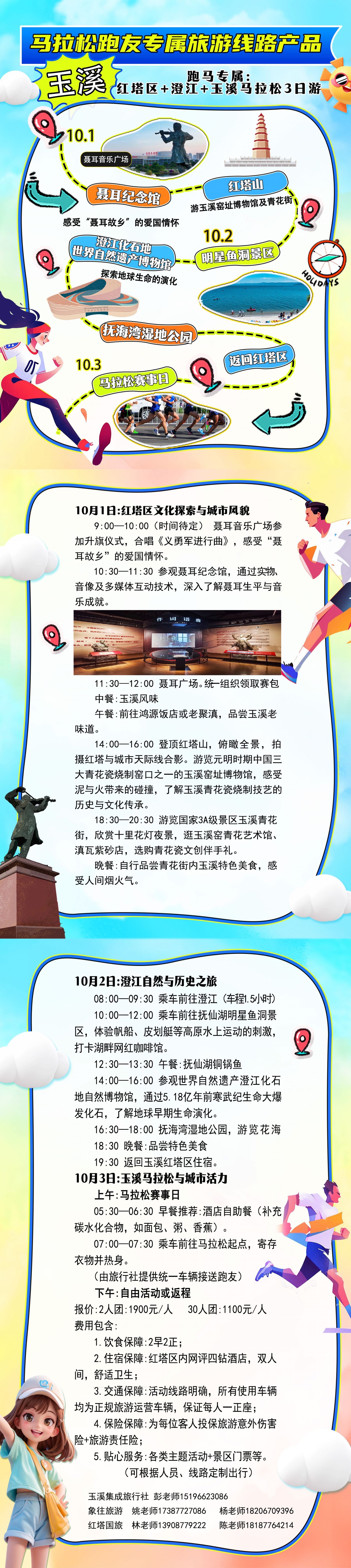玉马双节畅游玉溪丨旅行社线路产品推荐——跑马专属:红塔区、澄江、玉溪马拉松3日游 2025-09-26 16:05 玉溪市文化和旅游局 0 来源 玉溪市文化和旅游局 设计 严浩然 责编 刘榕杉 校对 杨燕婷 审核 华芳 终审 张敏