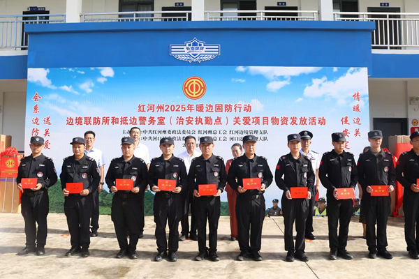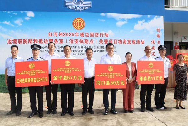 9月27日,红河州2025年暖边固防行动边境联防所和抵边警务室(治安执勤点)关爱项目物资发放活动在河口县大湾联防所举行。中共红河州委常委、红河州委政法委书记董万春,红河州政协副主席、红河州总工会主席张艳梅,红河州委政法委(州边防办)、红河州总工会、红河州边境管理支队相关领导,中共绿春、金平、河口县委、县政府相关领导出席活动,河口县边境管理大队民辅警、边境联防员代表共计80余人参加活动。