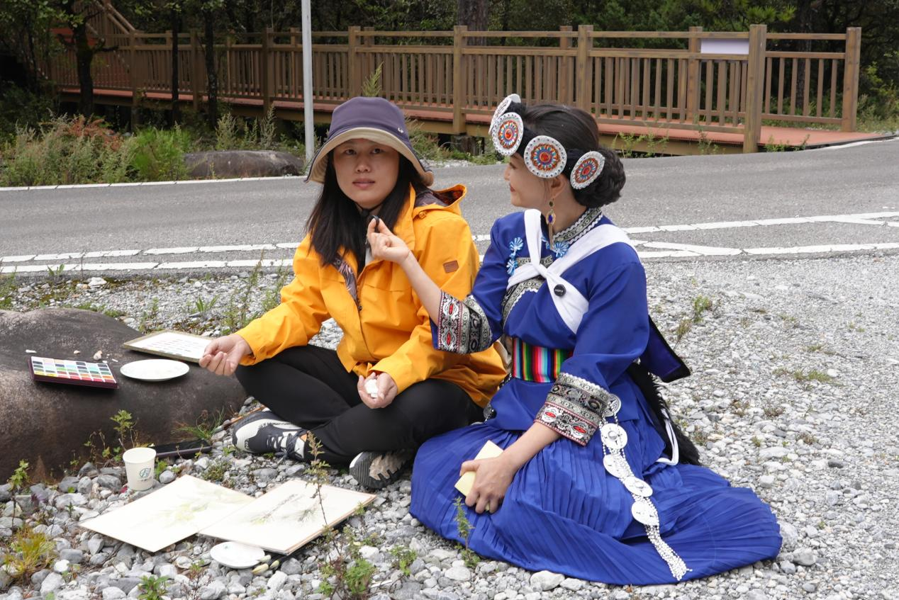在丽江古城的小桥流水间,李可染画院青年画院画家高堃女士俯身观察着石缝间的野花微草。这位擅长花鸟画的艺术家,在大山大水中寻找着散落的微小植物。“小的植物也有大的气象”,高堃说。她以植物点、线、面的巧妙结合,描绘出纤弱植物中蕴含的磅礴生命力,将微观世界升华为博大的宇宙观。