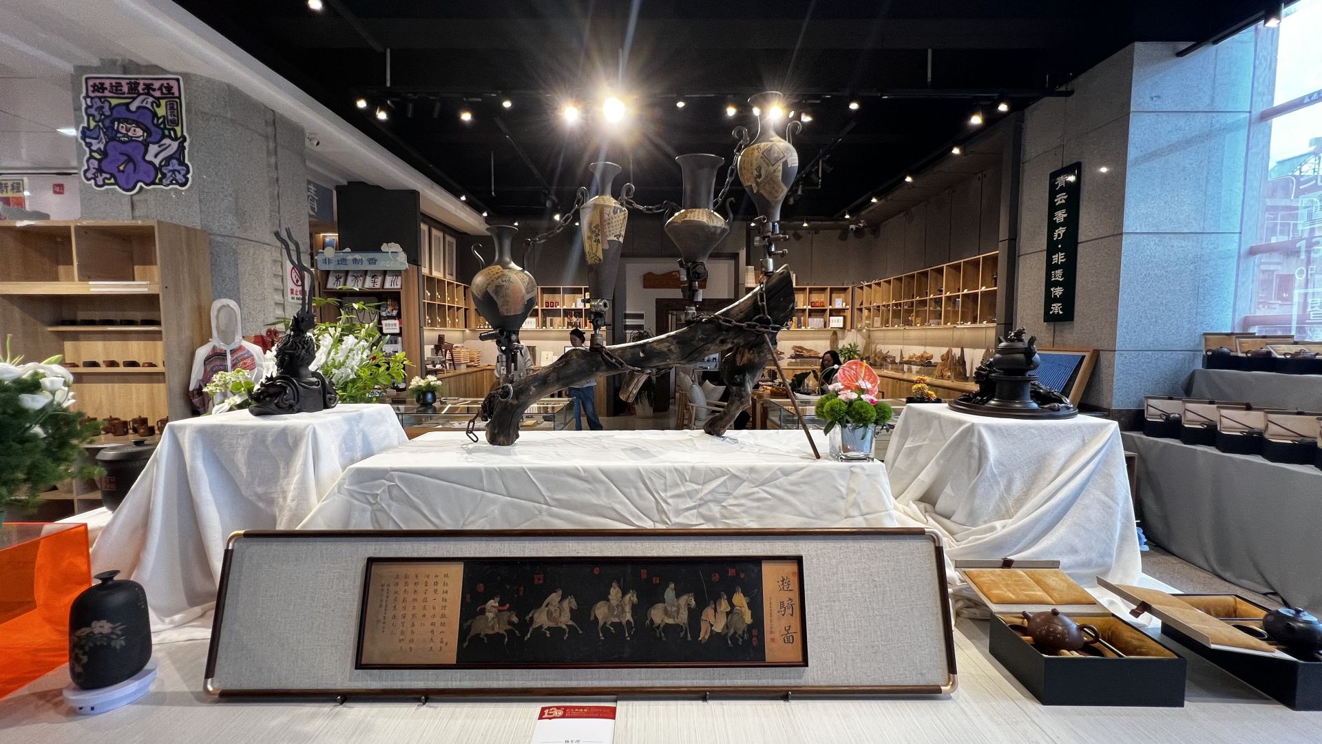 本次展览陈列精心划分三个章节,全方位呈现紫陶艺术的发展脉络与独特魅力。第一章节“变革与发展之间——民国艺术家向逢春与紫陶艺术”展出向逢春多款珍贵作品及相关收藏,充分展现向逢春在紫陶美学上的革新与贡献;第二章节“承继与发展之间——当代紫陶艺术家作品联展”邀请了当代三十余位紫陶艺术家,展出他们代表性的作品,体现跨越百年的匠心接力;第三章节“守正与创新之间——塑造未来紫陶创造力”位于文创区,展示逢春紫陶产品和新品牌阳生未阳的创新理念产品,为紫陶艺术未来发展探索新方向。
