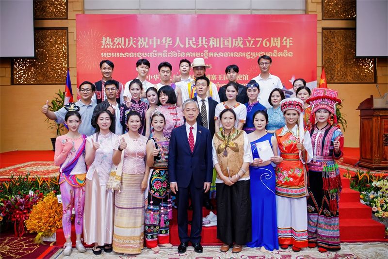 2025年9月26日,中国驻柬埔寨大使馆在金边举办庆祝中华人民共和国成立76周年招待会,各国驻柬使节及各界代表600余人齐聚一堂,现场洋溢着中柬友好的热烈氛围。