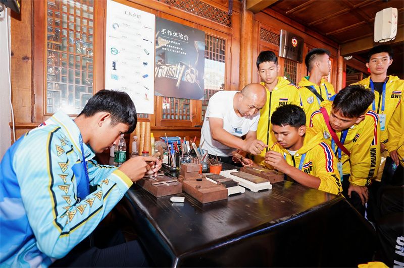 赛事期间,“进校园”活动让泰国、老挝代表队与丽江学子共练足球技巧、体验纳西打跳,语言差异在欢声笑语中消弭;“进景区”体验则让中外少年走进丽江古城,在木府探寻历史、在东巴文化体验馆学习象形文字,非遗魅力与民族风情在互动中传递。泰国孔敬市代表队队员CH.ChanLoet在体验馆用东巴象形文字写下——“幸福”,说要带回家送给妈妈:“这次旅行太开心了,我感受到了满满的幸福。”