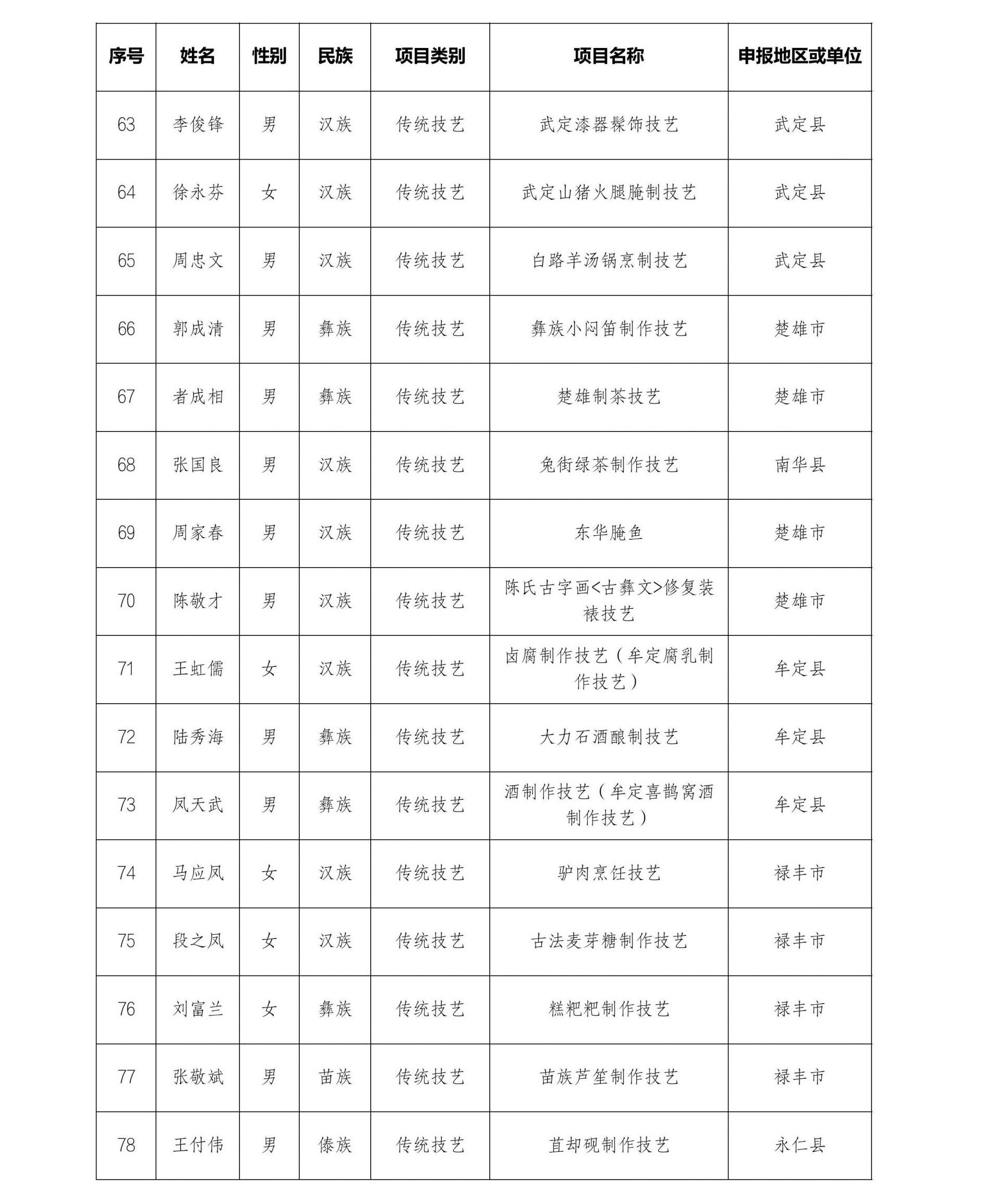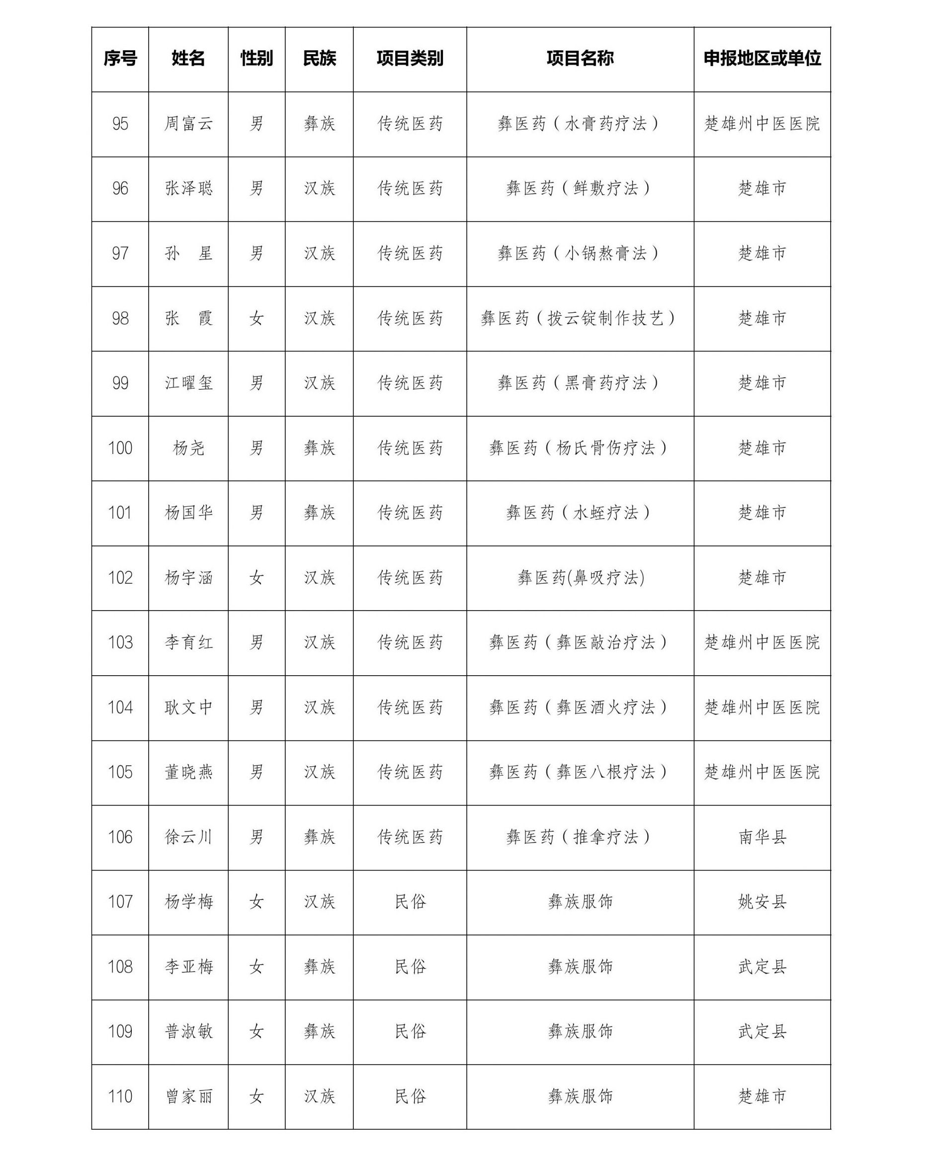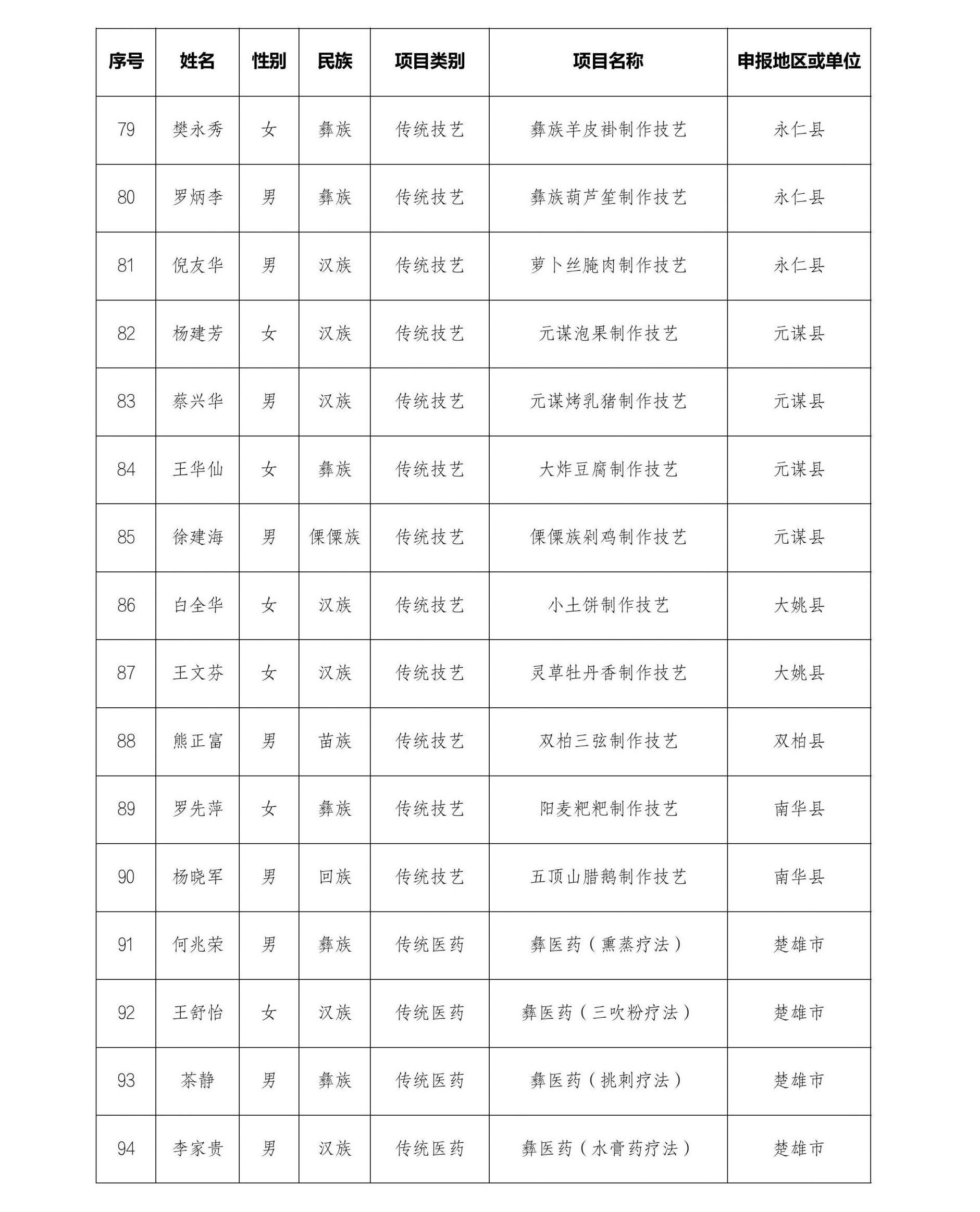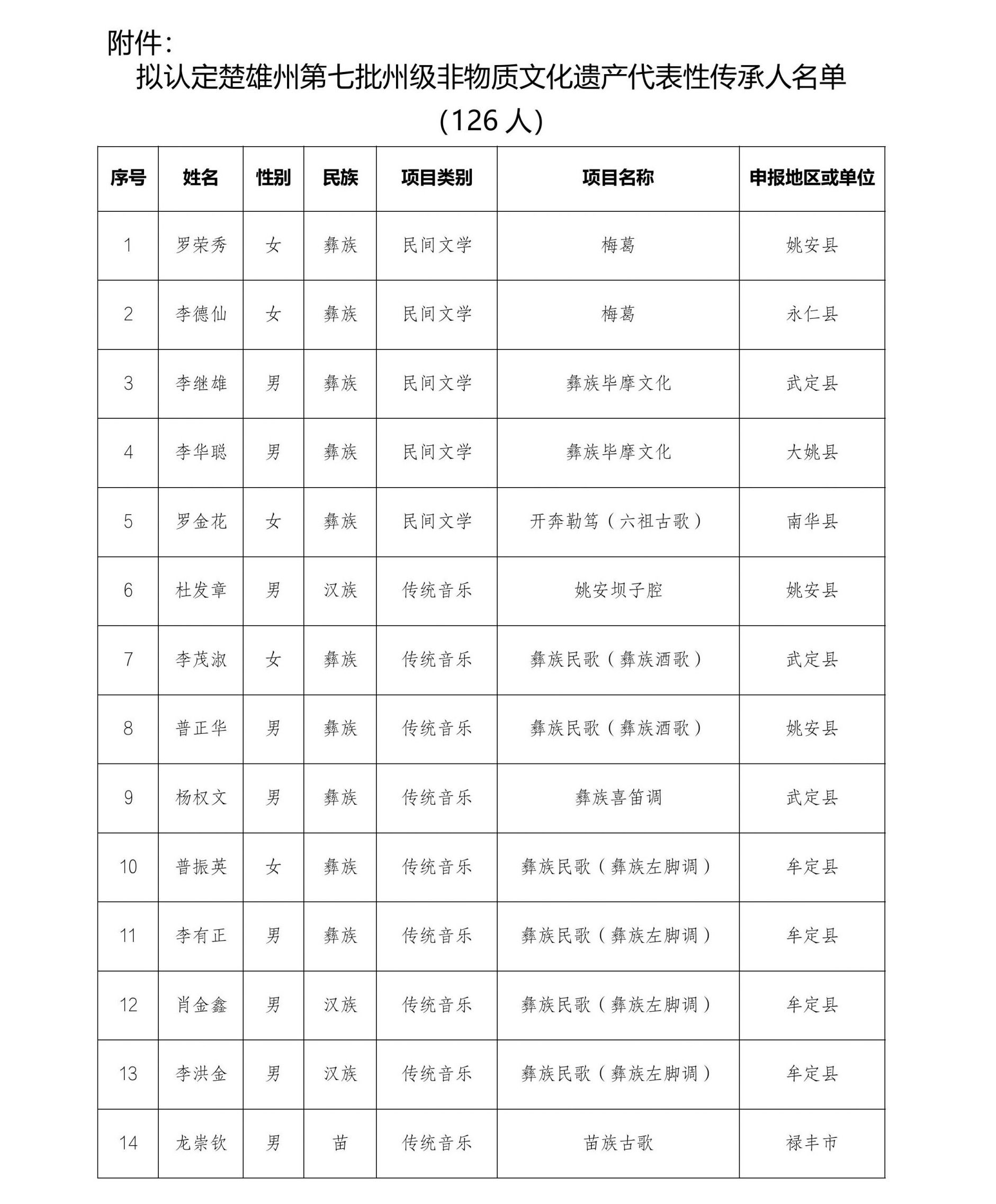 附件:拟认定楚雄州第七批州级非物质文化遗产代表性传承人名单