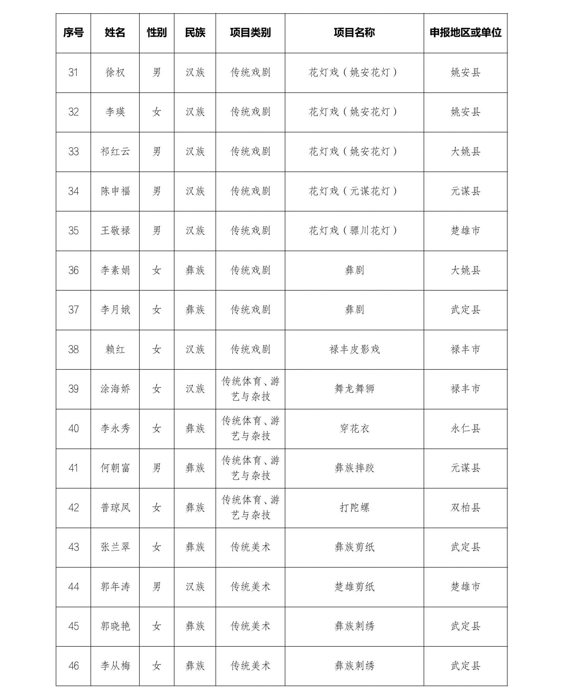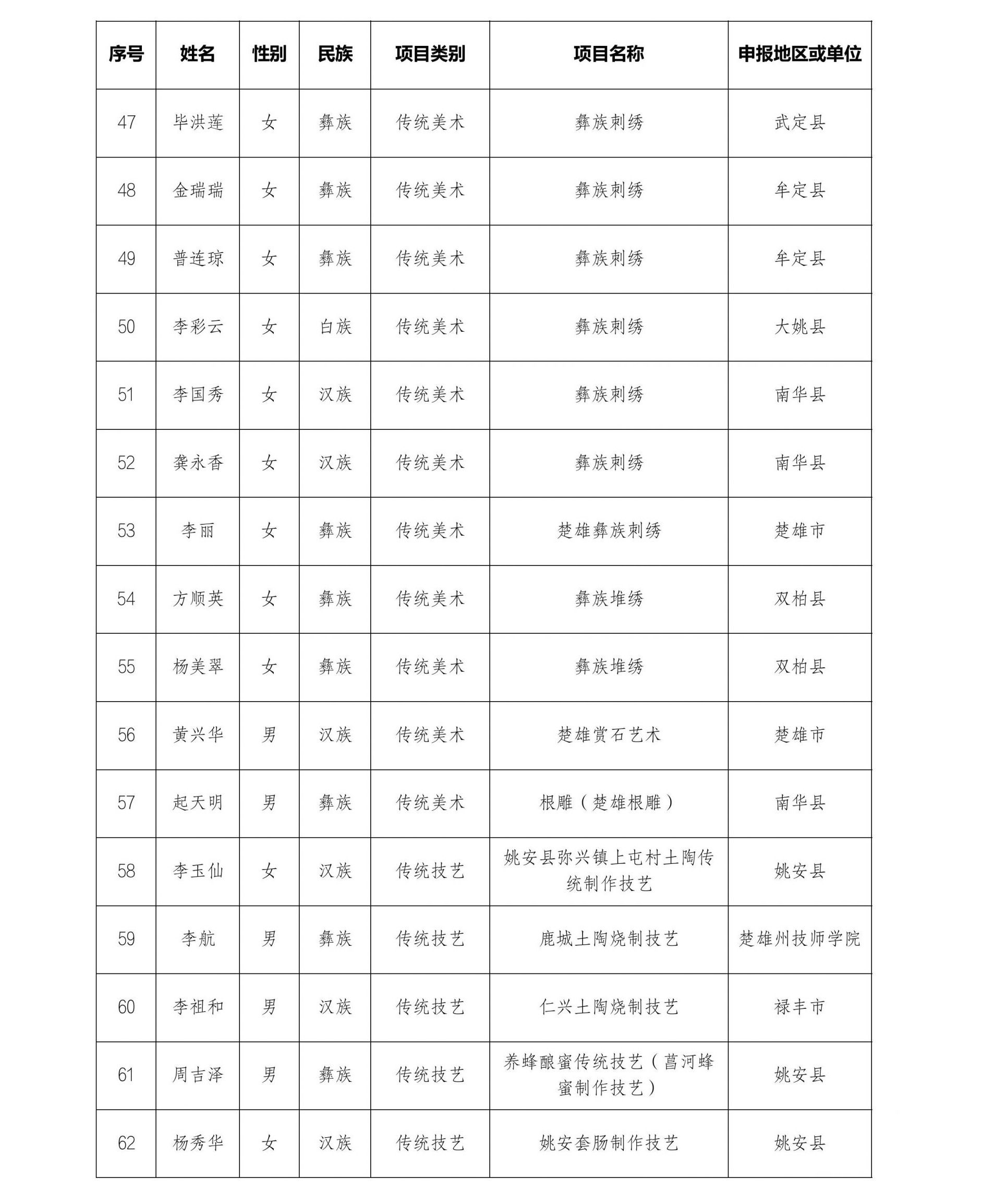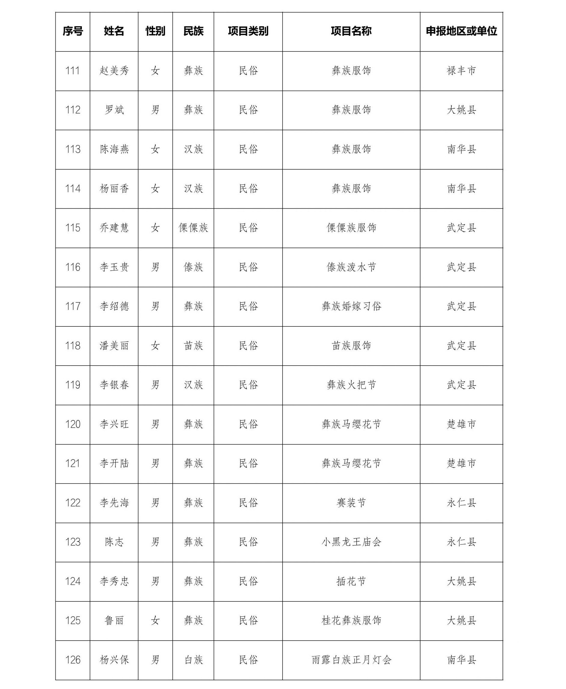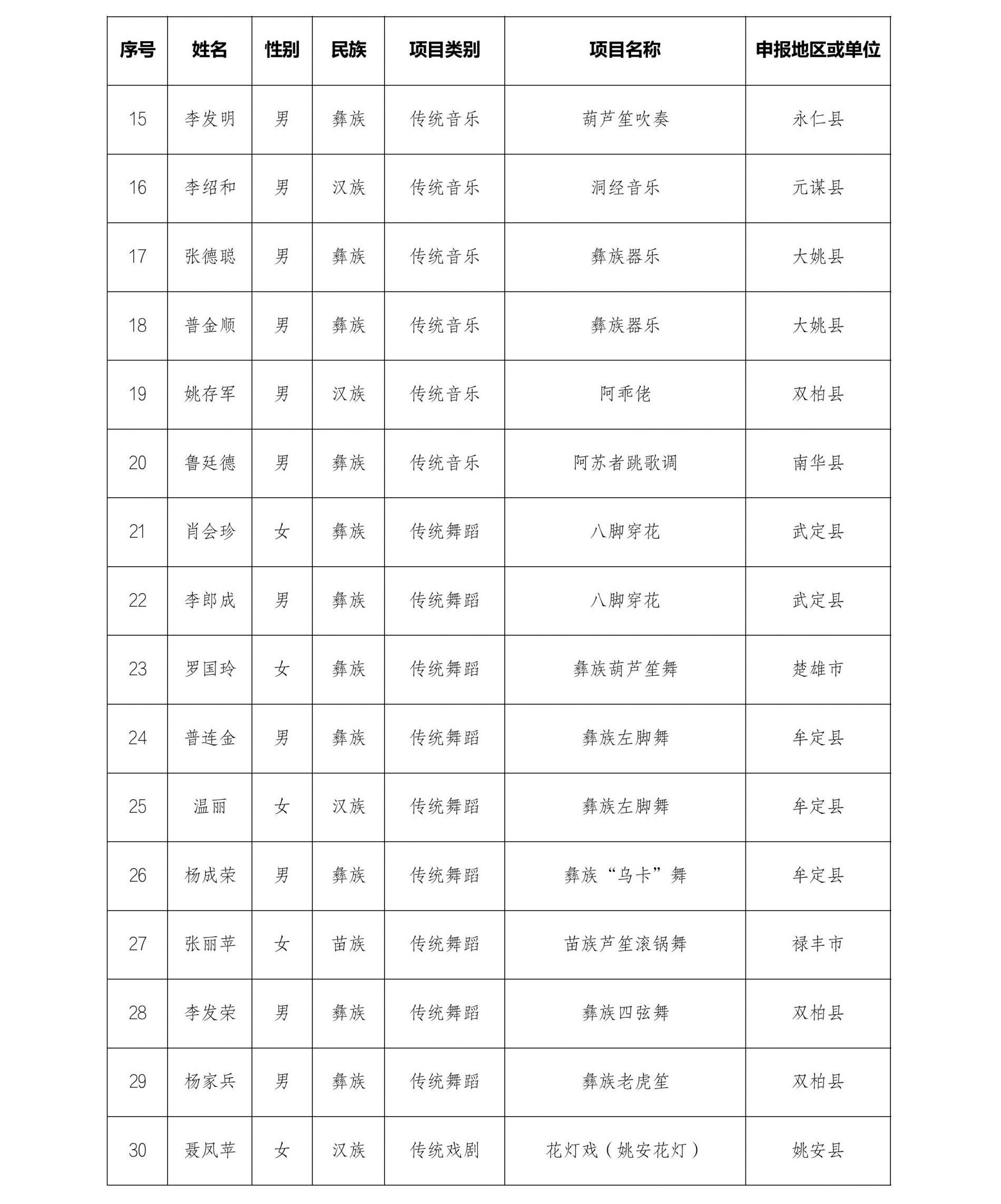 附件:拟认定楚雄州第七批州级非物质文化遗产代表性传承人名单