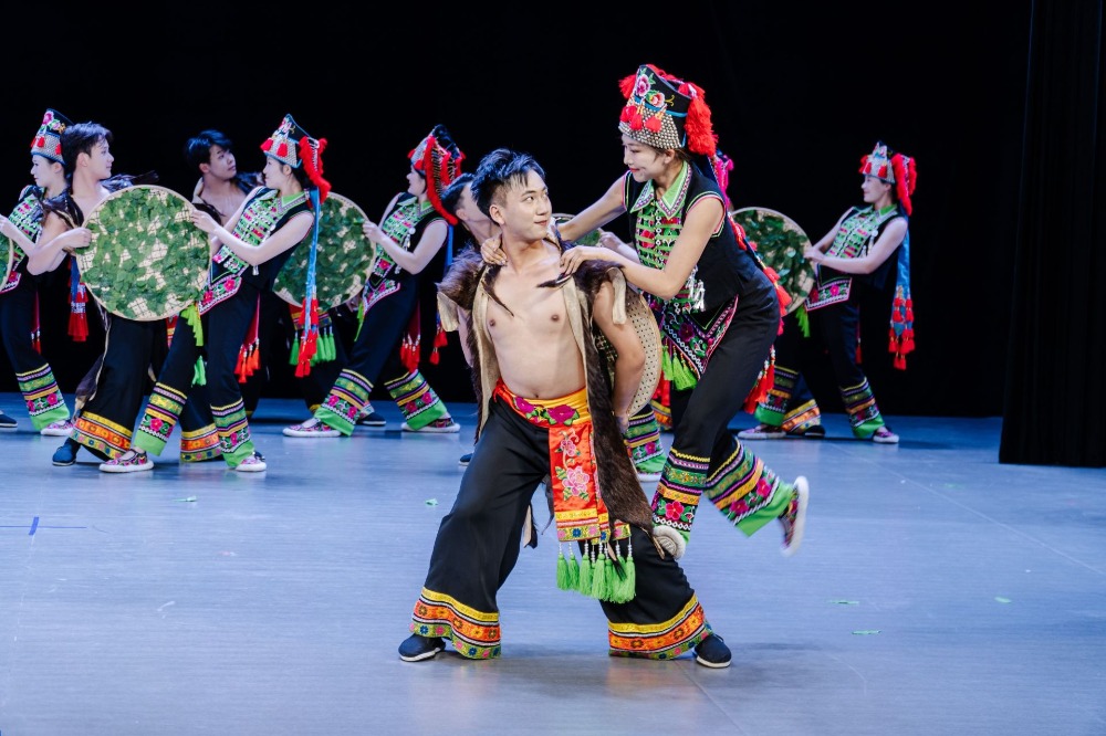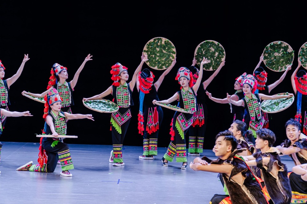 《茶香遇》以省级非遗项目“阿苏者跳歌调”为创作基础,聚焦茶马古道文化,讲述楚雄州南华县兔街镇马帮少年与山谷采茶女孩的故事:少年肩负运茶使命,女孩承担采茶、制茶任务,两人从不同方向出发,在一次次相逢中相知相爱,象征茶马古道上不同族群的交融共生。舞蹈既展现了马帮少年克服恐惧完成运茶使命、采茶女孩坚守岗位制茶的奋斗场景,也传递出茶马古道上的温情与文化传承的厚重,实现传统非遗与现代叙事的创新结合。