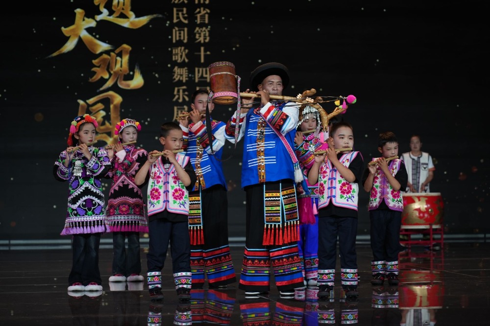 此次楚雄州选送的《昙华咕遮调》《牛灯舞》《茶香遇》《姚安小邑拉花》《想你的时候》5个节目,均以传统非遗项目、民族乡土文化为根基,涵盖歌、舞、乐三大艺术门类。其中,《牛灯舞》这一节目格外引人注目,它由40名10岁左右的小学生组成表演团队。孩子们用稚嫩却认真的舞姿,将这一古老传统舞蹈的灵动与趣味展现得淋漓尽致,让古老非遗在童真活力中焕新,真正实现了“薪火相传”,也让观众看到非遗传承在青少年群体中的扎实落地。《昙华咕遮调》的呈现同样充满故事感与传承温度。该节目由省级非遗项目“插花节”的代表性传承人张德荣领衔,演出团队堪称“非遗传承家族与乡邻联盟”——不仅有他的爱人、兄弟姐妹,还有儿子孙子,更有村里的年轻人共同参与。演奏者们默契配合,用悠扬的乐声与动人的歌声,将梅葛、彝剧的独特韵味传递给在场的每一位观众。
