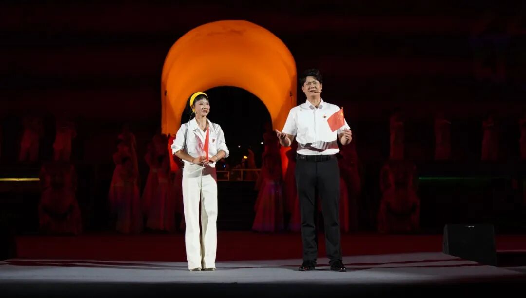 当《春风十万里》《歌唱祖国》《我和我的祖国》的熟悉旋律接连响起,全体参演人员登台带动全场合唱,将氛围推向高潮。观众们以最真挚的方式,将对祖国的祝福融入古城夜色。
