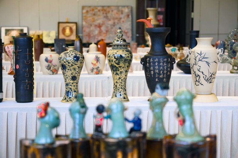 10月1日至31日,紫陶博物馆临展厅特别推出“千年窑火·笔墨陶韵——江碧波x林国隆作品联展”。两位艺术家的作品风格各异却又奇妙呼应,为市民游客带来一场跨越时空的艺术对话,展现出传统与现代交融的艺术之美。