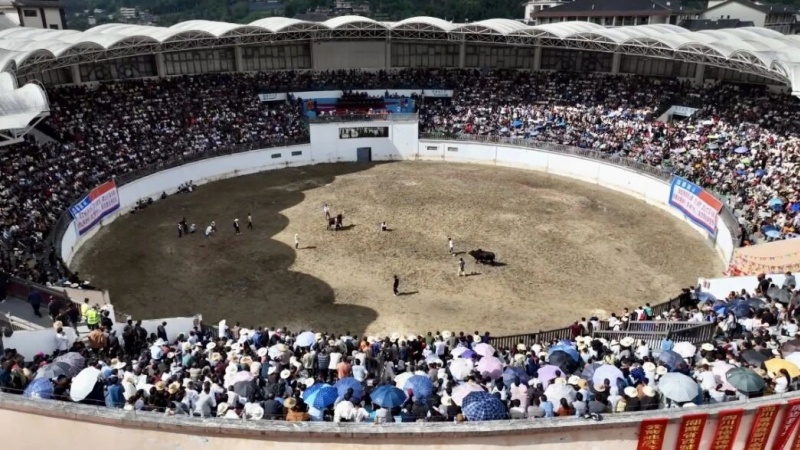 牛王争霸赛可以说是屏边最令人期待的一项活动。10月2日,屏边县2025年“金穗映苗乡·斗牛贺国庆”牛王争霸赛在斗牛场激情开赛,赛场内人声鼎沸、座无虚席。
