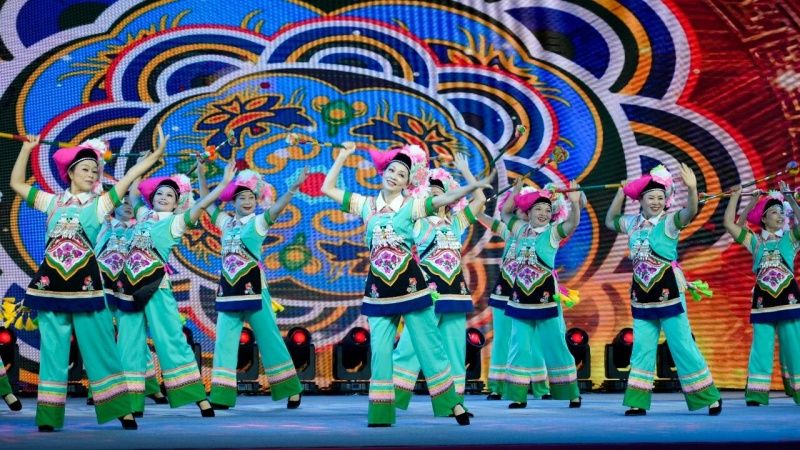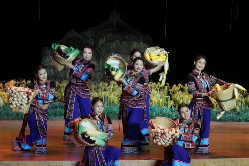 这场文化盛宴以“百姓为主角、乡村为舞台”,携11个特色节目精彩亮相,彝族、哈尼族、阿哲族等不同民族的舞蹈在同一舞台绽放。热情奔放的舞姿搭配色彩绚丽的服饰,将少数民族的团结之美展现得淋漓尽致。