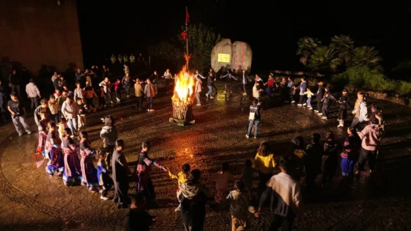 除了主舞台的精彩演出,本次活动还融合乡土文化,以“村晚+”模式串联非遗集市与展览、非遗项目互动体验、民俗狂欢、彝家现炒宴席等活动。