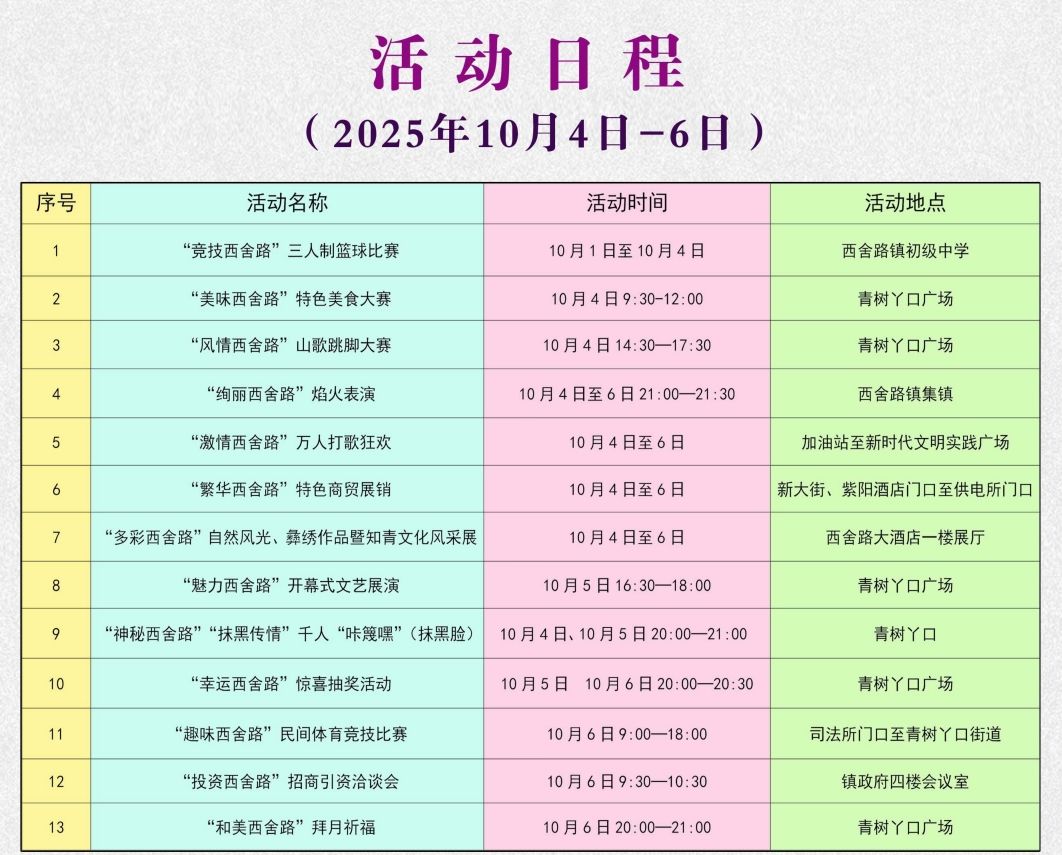 2025年10月4日至6日,“秘境哀牢山魅力西舍路”第四届生态文化旅游狂欢节,咱们在西舍路镇等你,不见不散!
