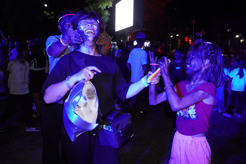 狂欢节“灵魂项目”来了!用锅底灰互相涂抹的“咔篾嘿(抹黑脸)”,是哀牢山传承百年的祈福习俗——涂得越黑,寓意来年越顺遂!放心玩、尽情嗨,说不定还能结识志同道合的“黑朋友”~