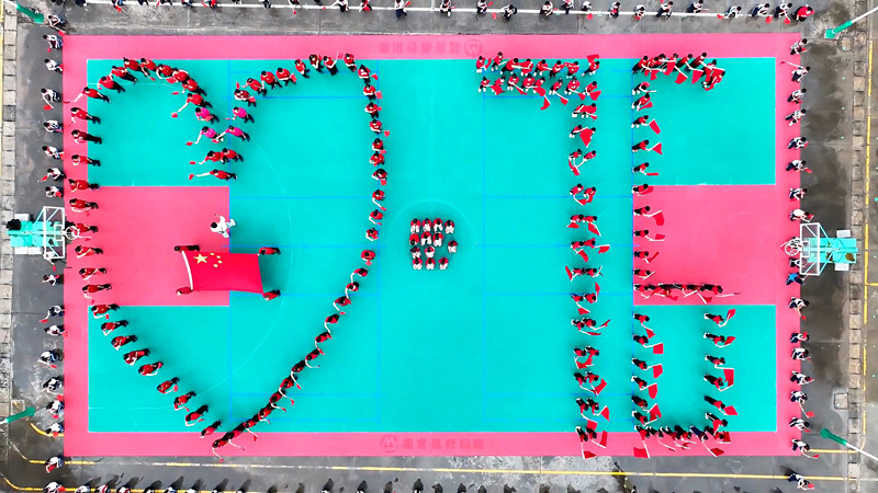 “我和我的祖国,一刻也不能分割,无论我走到哪里,都流出一首赞歌……”随着悠扬熟悉的旋律响起,师生们迅速集结,一幅动人的爱国画卷徐徐展开,老师们围成一颗饱满的爱心,将五星红旗闪耀其中,鲜红的国旗与教师们的着装交相辉映,一抹中国红表达了对祖国的深深热爱;学生们则以灵动的队列组成醒目的数字“76”,生动诠释着对中华人民共和国成立76周年的美好致意和祝福。大家手持小国旗,高声齐唱《我和我的祖国》,脸上洋溢着自豪与喜悦,国旗的红浪与师生们的笑容交织,让整个校园洋溢着浓浓的爱国氛围。“今天在永定小学的校园回荡着同一个声音——祖国生日快乐,动人的歌声汇聚成一种表白——我爱你中国!作为小学生,我们现在的爱国就是认真学好每一课,积极参加每一次活动,童心向党,争做新时代好少年。”永仁县永定小学学生朱宇泽说。