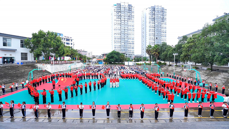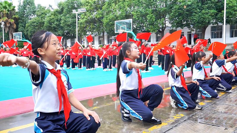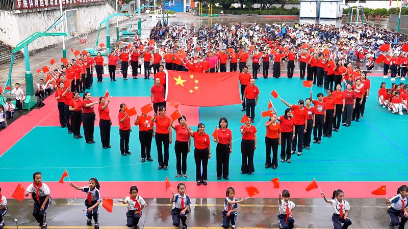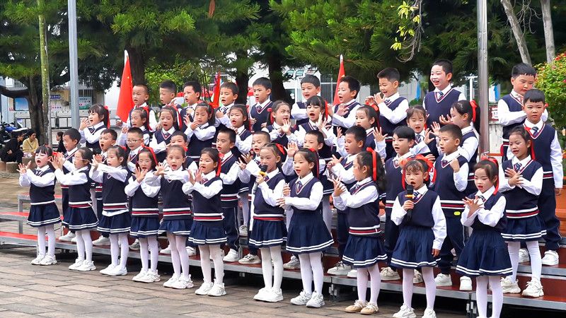 盛世华诞,喜迎国庆。9月30日,楚雄州永仁县永定小学里红旗飘扬、歌声嘹亮,1500余名师生共同放歌,以同唱《我和我的祖国》快闪活动,拉开了庆祝中华人民共和国成立76周年系列活动的序幕,用青春的姿态向祖国深情告白。