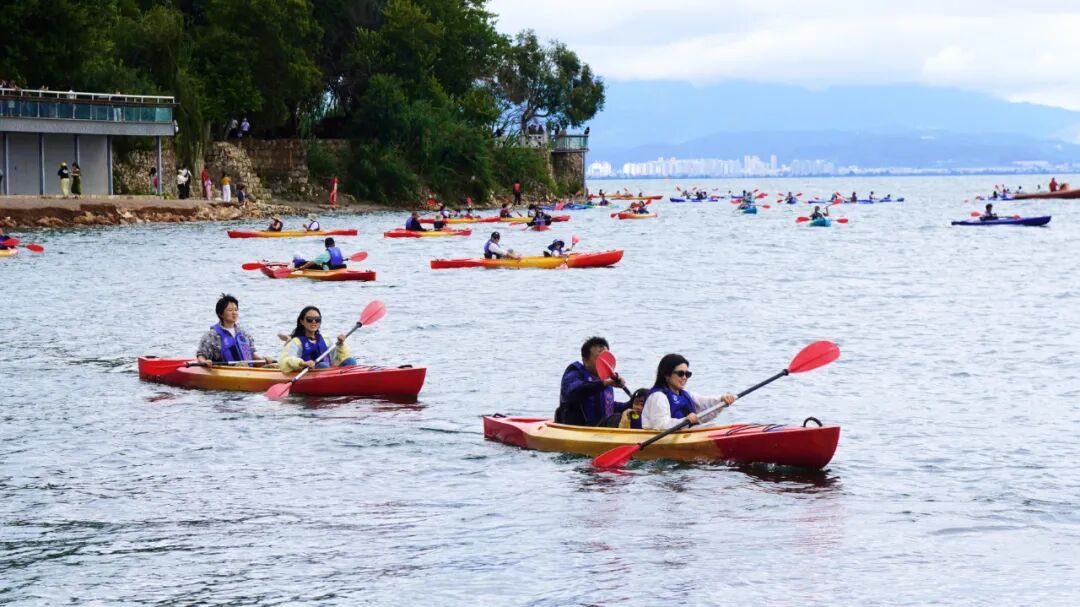 抚仙湖畔上演“皮划艇竞逐” 澄江文体旅融合业态点亮“双节”假日