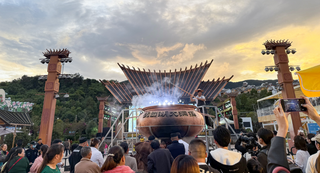 国庆、中秋假日期间,抚仙湖畔的广龙小镇化身欢乐的海洋!2025澄江抚仙湖铜锅美食节,在万众期待中热烈启幕,500公斤超大型铜锅煮鱼的壮观场面、千人共享鱼宴的热闹景象、精彩纷呈的歌舞表演,将假日夜晚点缀得格外璀璨,吸引了远近游客前往参与。