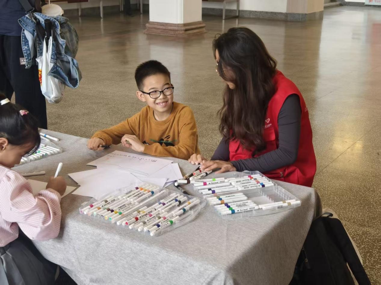 (云南省美术馆的志愿者为游客提供服务)