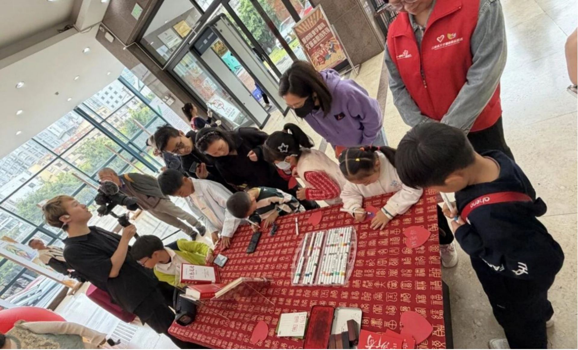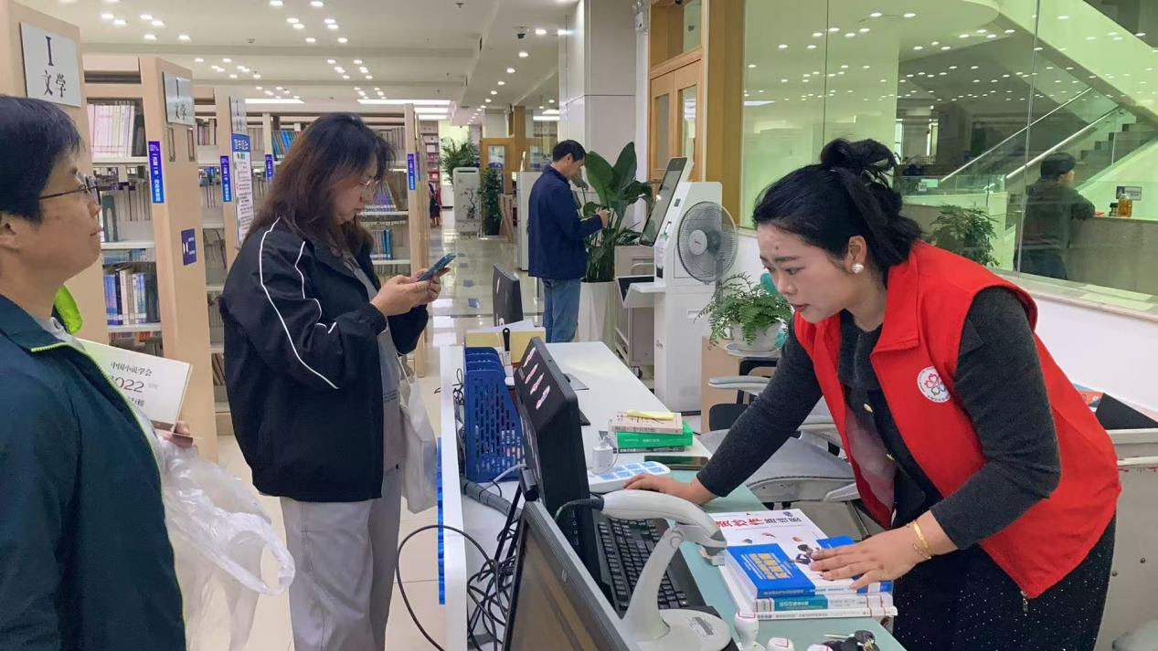 (云南省图书馆服务大厅志愿者在帮助读者朋友办理借阅卡服务)