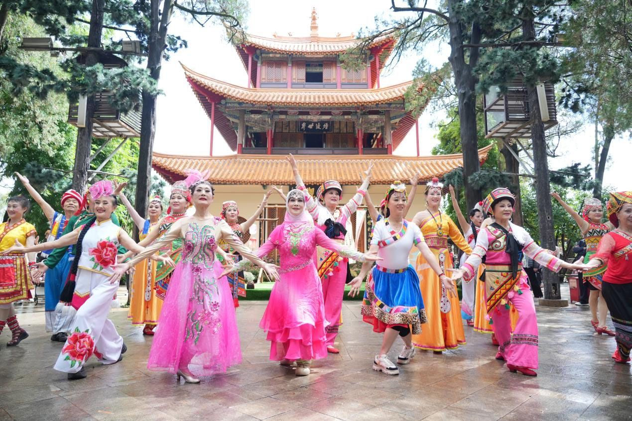 10月3日,昆明文庙百余名舞者随着悠扬的乐曲翩跹起舞。这场由昆明市文化和旅游局主办的群众广场舞展演,不仅是一场精彩纷呈的文化视觉盛宴,更是文旅志愿者风采的一次生动集中展示。在西山睡美人文化艺术节、呈贡花卉文旅活动、五华城市咖啡生活季、官渡古渡渔灯文化节等遍布全市的文旅活动中,志愿者的身影同样闪耀,成为活动中不可或缺的重要力量。与此同时,昆明市各区合力形成文旅志愿服务网络,成效显著。根据人流适时增设志愿服务点位,数千人次参与志愿服务,服务时长累计上万小时。如昆明市图书馆精心组织了15个内容丰富、形式多样的展览活动,惠及人次累计达5.168万人次。