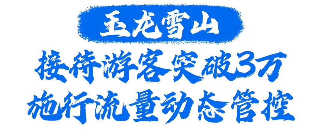 该负责人表示,景区根据当日入园分时预约、分区游览和分片管控的基础上,经综合研判玉龙雪山景区当日天气实况、交通状况、甘海子停车场容量、实时游客接待量和瞬时承载量、大数据分析结果等情况后,适时对未提前预订景区各类票种且尚未进入景区的游客和车辆采取分流、控流和限流等疏导措施,确保景区游客流量控制在安全有序范围内。同时建议游客前往大玉龙景区、白沙古镇等景点错峰旅游,提升游览体验。