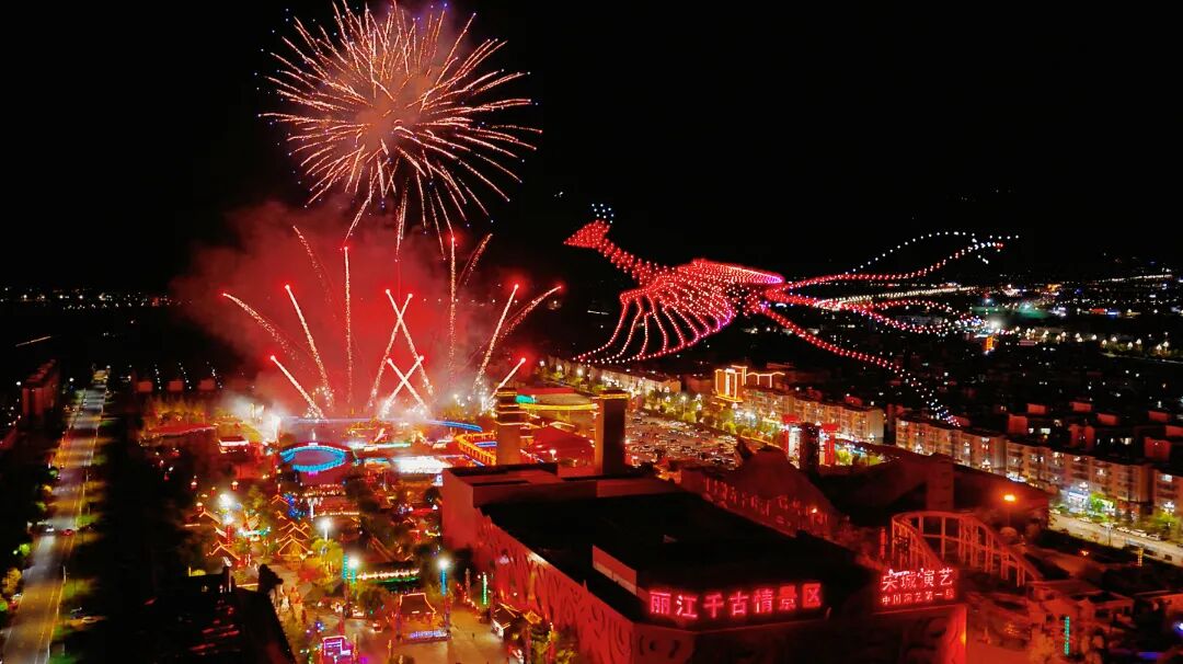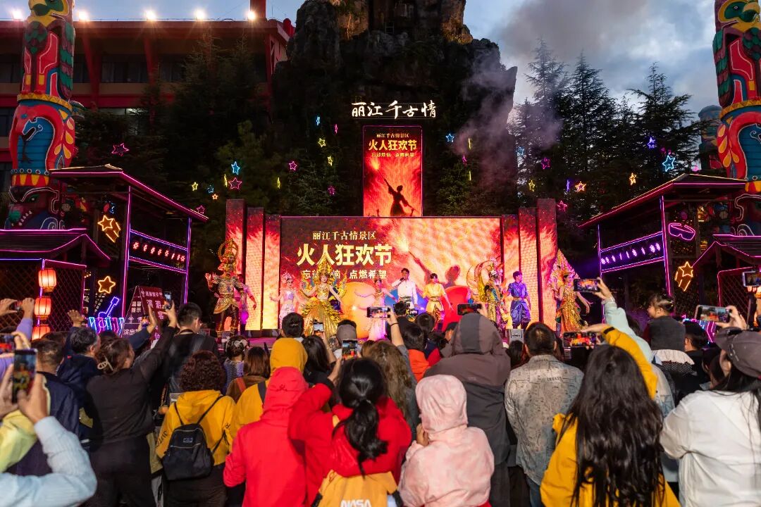 国庆期间,丽江千古情景区“火人狂欢节”吸引了不少的游客朋友。现象级非遗达人空降,火秀仪典盛大而浪漫。活动现场,无数架无人机直冲云霄。以苍穹为幕,以雪山为景,“火人”手持火炬攀登焰火“天梯”,在高原之上点燃开幕仪式圣火。