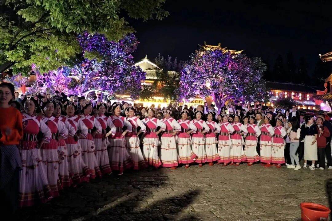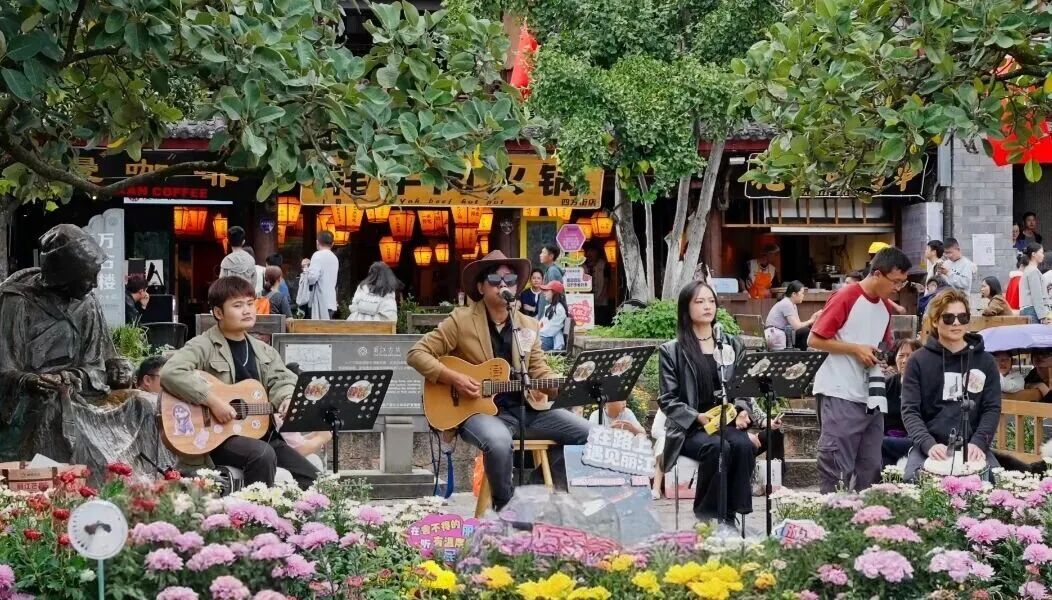 “丽江民谣音乐季”路演活动在四方街温情开唱,吉他轻拨,歌声悠扬,自由与浪漫在石板路上流淌,过往游客纷纷驻足聆听,仿佛与灵魂深处的诗意不期而遇;在四方街,每晚举行的“篝火打跳”成为游客最热衷的互动体验项目,熊熊篝火燃起,欢快的乐声回荡在街巷之间;与此同时,大研纳西古乐会每晚奏响的“纳西古乐”则带来另一番意境,古老的乐器、庄重的曲调,仿佛将人带回千年前的时光长河;在四方街广场开展的“做月饼、品月饼”主题活动将在现场制作、展示丽江传统月饼,邀请广大市民、游客朋友免费品尝,感受中秋的节日气氛。