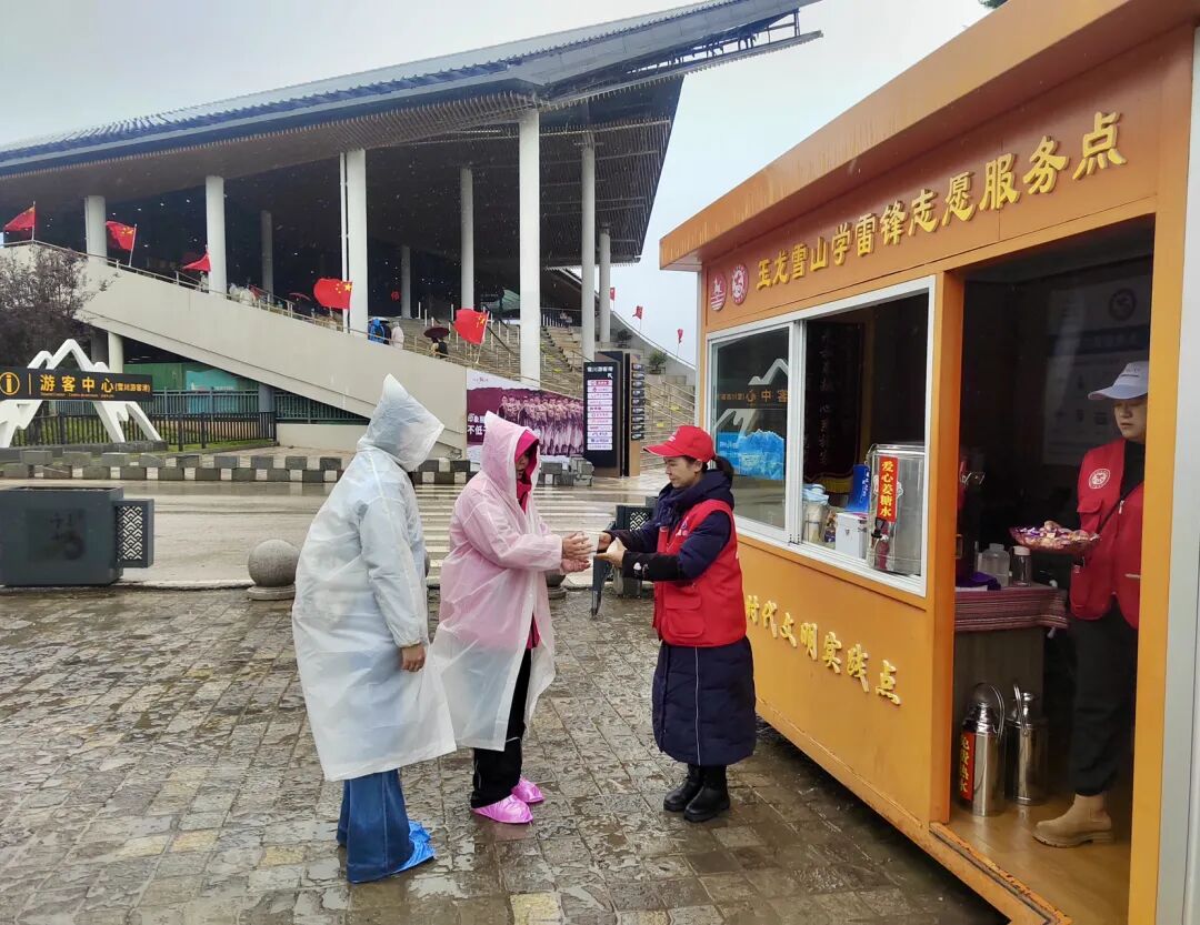 “您好,需要热水吗?请慢用。”在核心游览区的“玉龙雪山学雷锋志愿服务点”,头戴红帽、身着红马甲的志愿者正将一杯热水递到游客手中。橙黄色的岗亭外,“雷锋精神 拾金不昧”的横幅格外醒目。这里不仅是提供问询指引、休憩饮水的便民站,更成为了传承爱心、弘扬文明风尚的窗口。志愿者用一次次微笑、一杯杯热水、一句句解答,将“奉献、友爱、互助、进步”的精神播撒在雪山下。