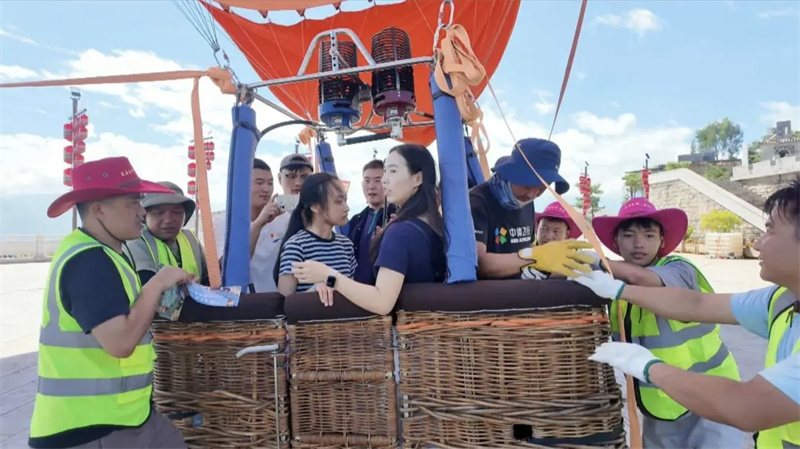 在红河马帮古城,一场别开生面的热气球观光之旅,为游客带来了前所未有的文旅体验。游客们乘坐热气球,在空中直观感受古老城郭与山水交融的景致,实现了“空中看古道,云端品历史”的沉浸式体验。在弥勒太平湖森林小镇,游客们乘上热气球,俯瞰千亩百合,欣赏小镇美景。