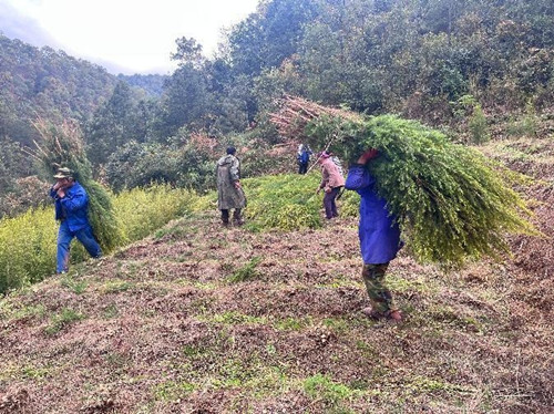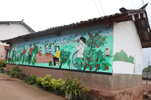 “作为地质灾害易地搬迁统建点,豹子箐曾长期受道路狭窄泥泞、环境杂乱困扰。在各级党委政府的关怀下,豹子箐整村搬进、人畜饮水建设、村民小组活动场所建设、人居环境整治等基础设施建设项目先后落地,今年实施了民族村寨旅游提升建设项目。”丫口村党总支书记郭旺全介绍说。道路硬化了,垃圾清理了,畜圈拆除统一规划,还美化了墙体,打造了微景观,让村子“面子”焕然一新;烤烟、核桃、澳洲油茶种植与畜牧养殖并行,外出务工与采菌增收互补,村民的钱袋子也渐渐鼓了起来。