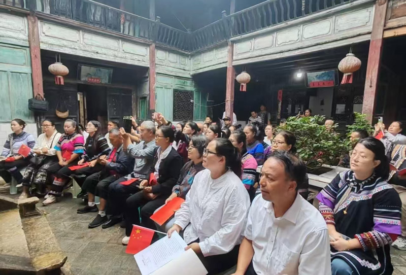活动现场还推荐并陈列了“影像中的侨乡”“文字里的史诗”两大主题的侨乡影像作品集与文史读物。同步开展的迎国庆及马帮侨乡文化主题书法创作,以笔墨丹青勾勒古城记忆,抒写家国情怀,让观众在朗读声中体验文字与书法的奇妙交融。返乡创业青年倾情演绎吉他弹唱《山腰上的阿妈》,质朴旋律与真挚情感,传递出侨乡大地的温度与故事。