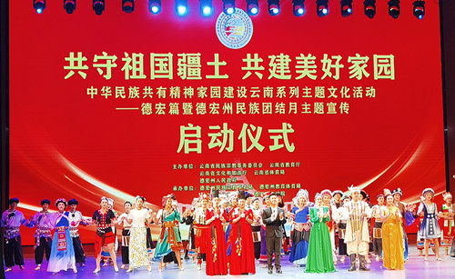 启动仪式后,一场充满家国情怀的主题文艺表演精彩呈现。舞蹈《节日的景颇山》《剪纸光影里的赤子山河》、傣剧《刀安仁》等节目轮番上演,以歌舞为媒介,传递了各族群众对祖国的热爱,唱响了“中华民族一家亲、同心共筑中国梦”的乐章。