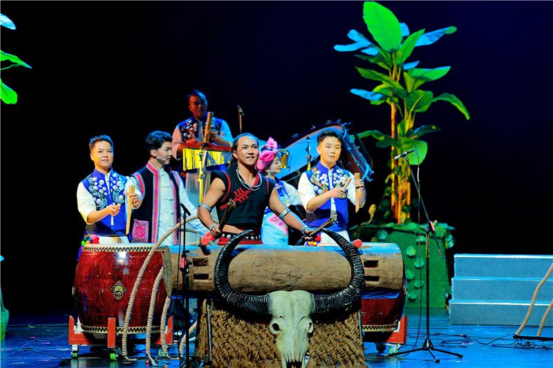 为打磨这部作品,主创团队于2023年深入云南多个少数民族村寨采风,采集最原始的乐器声响与最真实的生活脉动。历经17次精心修改,最终确立以“器乐对话”呈现“中华民族一家亲”的创作主线。该作品不仅在2024年7月荣获云南省第六届群众文化“彩云奖”,更实现了三重创新:将佤族木鼓等非遗乐器与现代音色融合,构建传统与现代对话场域;以基诺族太阳鼓为基底,融入云南多民族音乐元素,形成多元一体声音图谱;在保持群众文化属性的同时,通过专业化作曲编排和演奏技法,提升艺术水准。这部多年磨一剑的作品也实现了从地方奖项到国家级舞台的跨越。