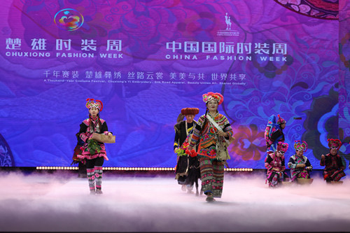 启幕演出以“千年赛装”“丝路云裳”“美美与共”“世界共享”四大篇章为脉络,铺展一幅恢弘的民族文化长卷。展演服饰中,彝族马樱花图腾融入现代服装剪裁,传统云纹与白、傣、哈尼等10余个民族的刺绣技法交织融合,每一件作品都是民族文化交融的鲜活载体,将楚雄彝绣“穿在身上的史诗”转化为可感知、可认同的文化符号。正如当地七彩彝绣公司践行的“民族彝绣、民族共绣、民族共享”理念,各族匠人以针线为媒,在技艺切磋中增进民族情谊,让彝绣从单一民族文化标识,升华为各族群众共同珍视的中华民族共有文化财富。