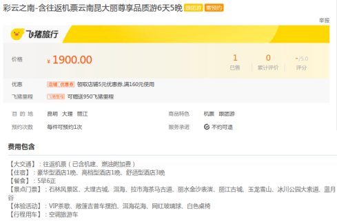 该旅游产品广告链接:彩云之南-含往返机票云南昆大丽尊享品质游6天5晚