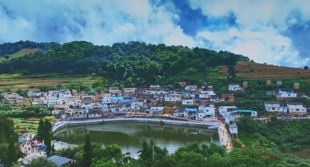 霞光温柔地勾勒出古村落的轮廓