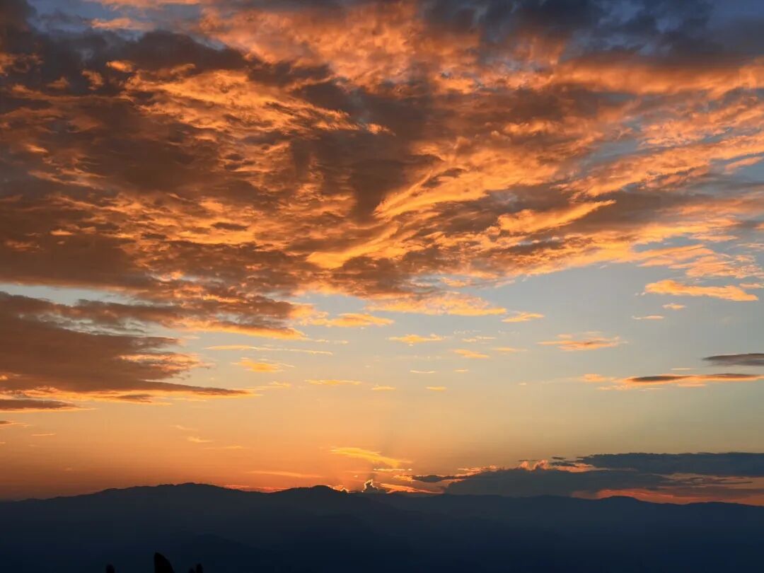 绝美的夕阳、连绵的山峦、被晚霞染红的山花