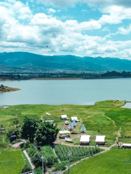 大理巍山苍鹭谷牧场营地是一个紧挨苍山洱海的“秘境营地”,这里湖水清浅、群山围绕,是个露营的好去处。营地分为生态牧场和乡村户外两大核心区,有利用一线湖岸风光,打造的大理最新趣味主题装置植物美学教室、山谷咖啡;也有以万亩梨园为背景的山地自行车道、步道、山地运动场、水上运动中心等项目。