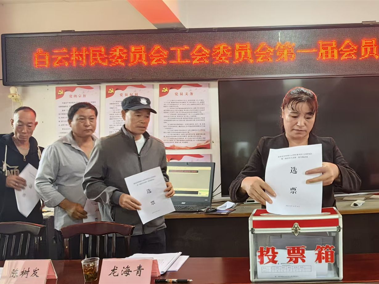 10月16日,白云村召开白云村民委员会工会委员会第一届会员大会第一次全体会议,会议听取并审议通过了大会各项议程和内容,通过无记名投票选举产生了白云村第一届工会委员会、经费审查委员会、女职工委员会及劳动法律监督员、劳动争议调解员。白云村工会委员会依托村党群服务中心,把工会的普惠政策和“娘家人”的贴心服务送到村内广大职工群众身边,将工会融入推进基层治理、助力乡村振兴的大局中来,成为打通工会服务群众“最后一公里”。目前,白云村民委员会工会委员会已纳入工会会员33人。