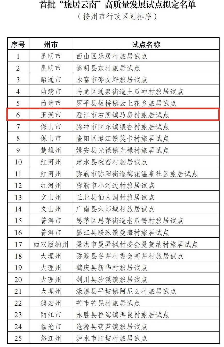为进一步发挥典型引路作用,按照“旅居云南”高质量发展试点工作方案,云南省文化和旅游厅联合有关部门组织开展了首批“旅居云南”高质量发展试点遴选工作。经州市申报、专家审查、实地复核、部门联审等程序,拟确定昆明市西山区乐居村等25个试点作为首批“旅居云南”高质量发展试点。省文化和旅游厅现将拟定名单予以公示,公示期截至2025年10月21日。