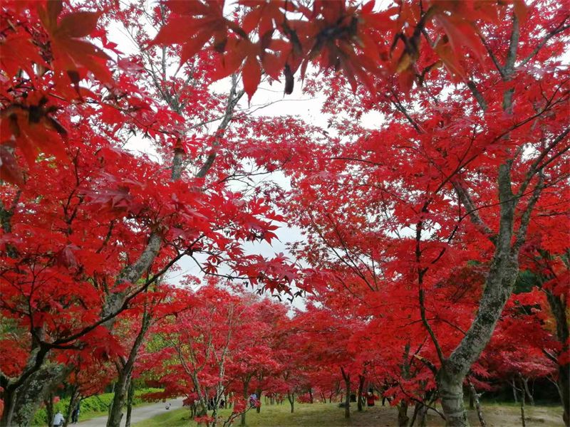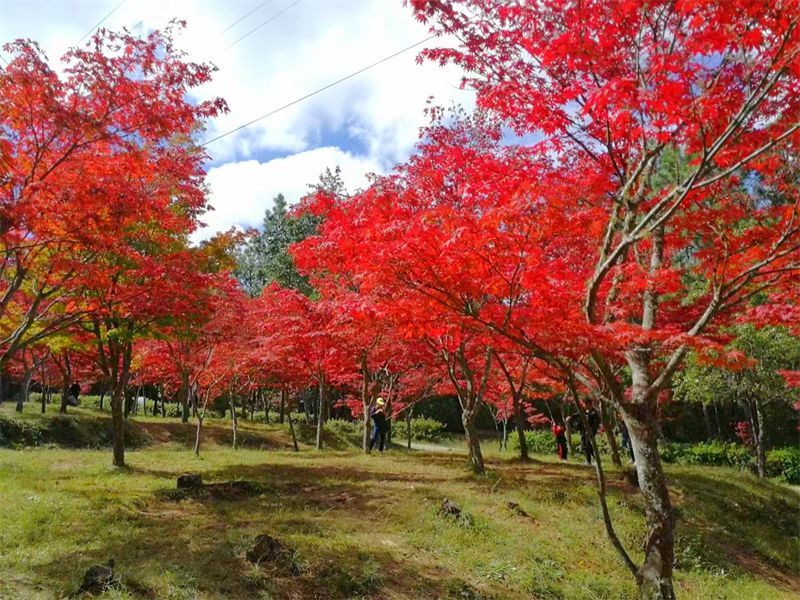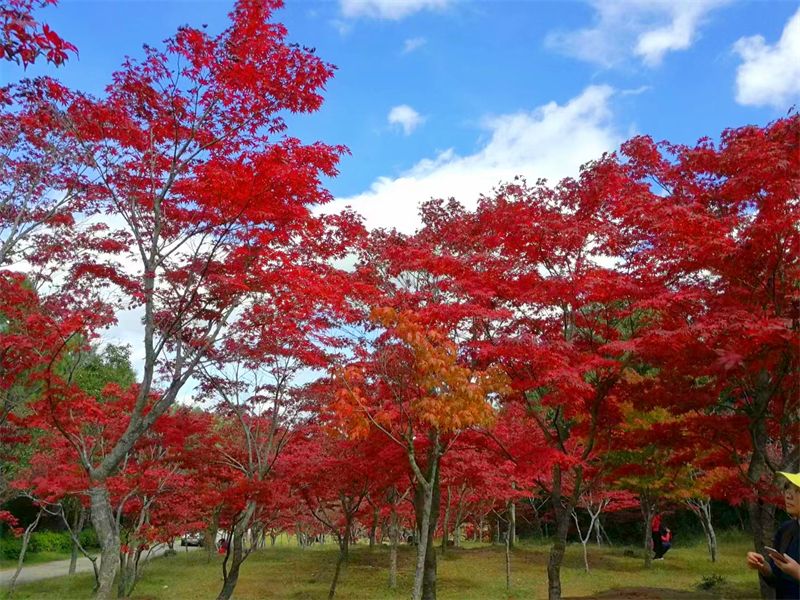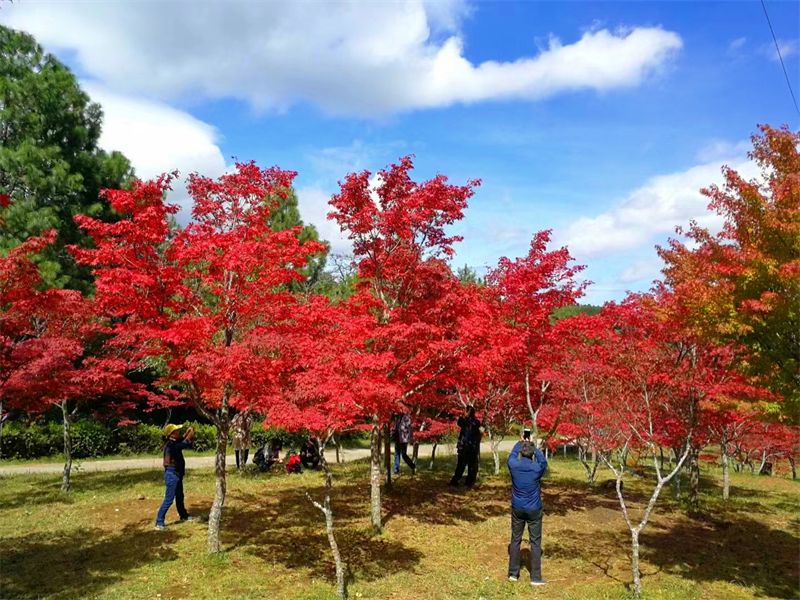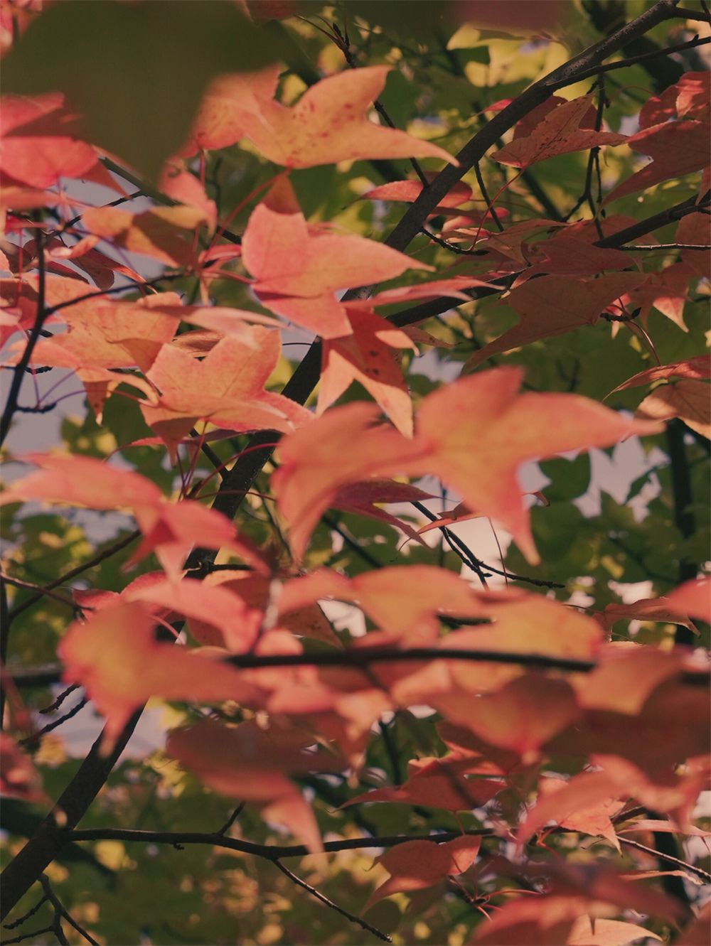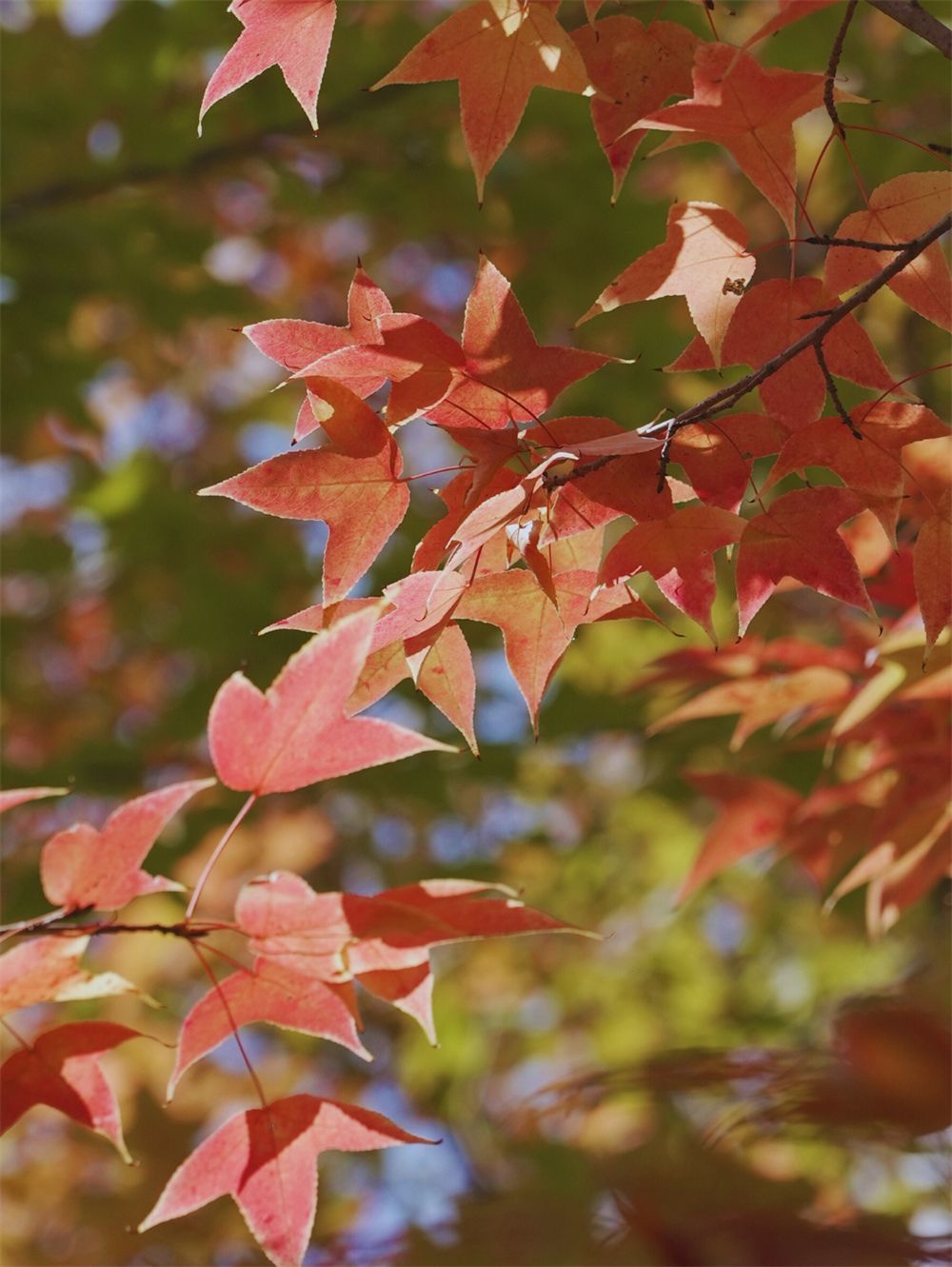 “万林秋叶染天工,夹绿编黄染面红”的美景