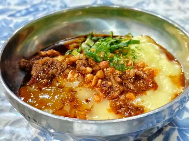 搭配麻辣胸标与甜辣牛肉干巴的糯米饭
