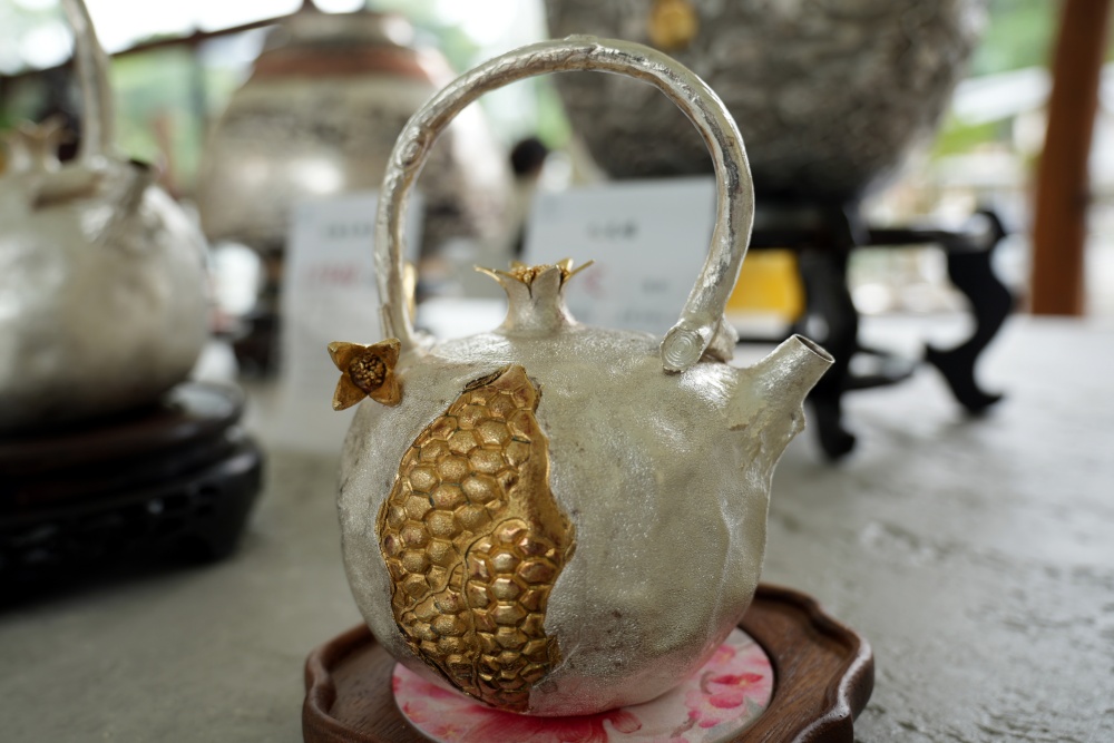 坊中银壶、银饰、银工艺品等应有尽有,有经典的银器,也有创新的陶包银茶杯,每一件都历经工匠的数十万次捶打与雕琢,才能锻造出眼前华彩夺目的银器。