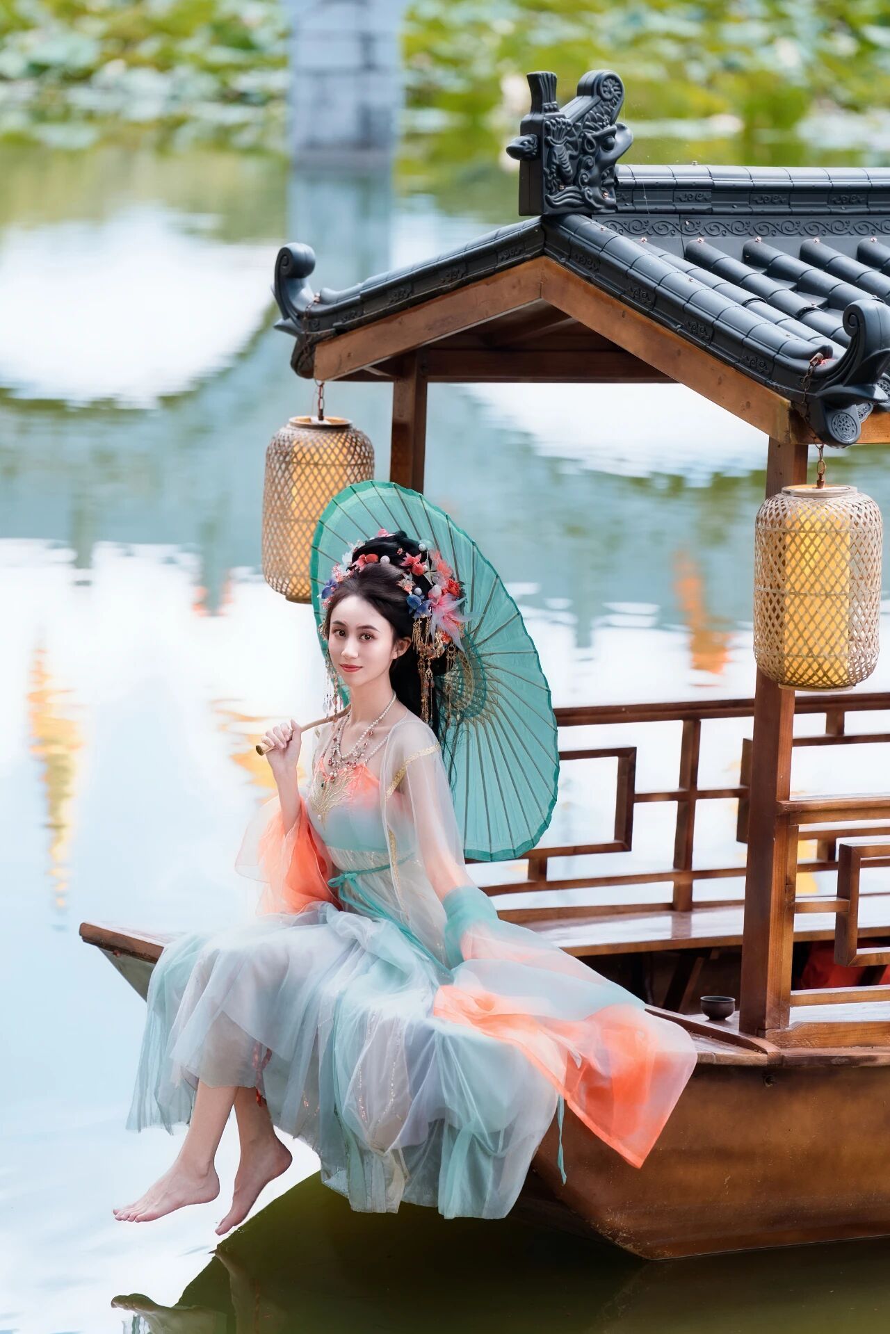 小船停靠在泮池边,古色古香,穿上汉服,搭配团扇、油纸伞、书卷等道具,来一组古韵十足的旅拍,仿佛穿越到千年前,即将展开一段奇妙之旅。