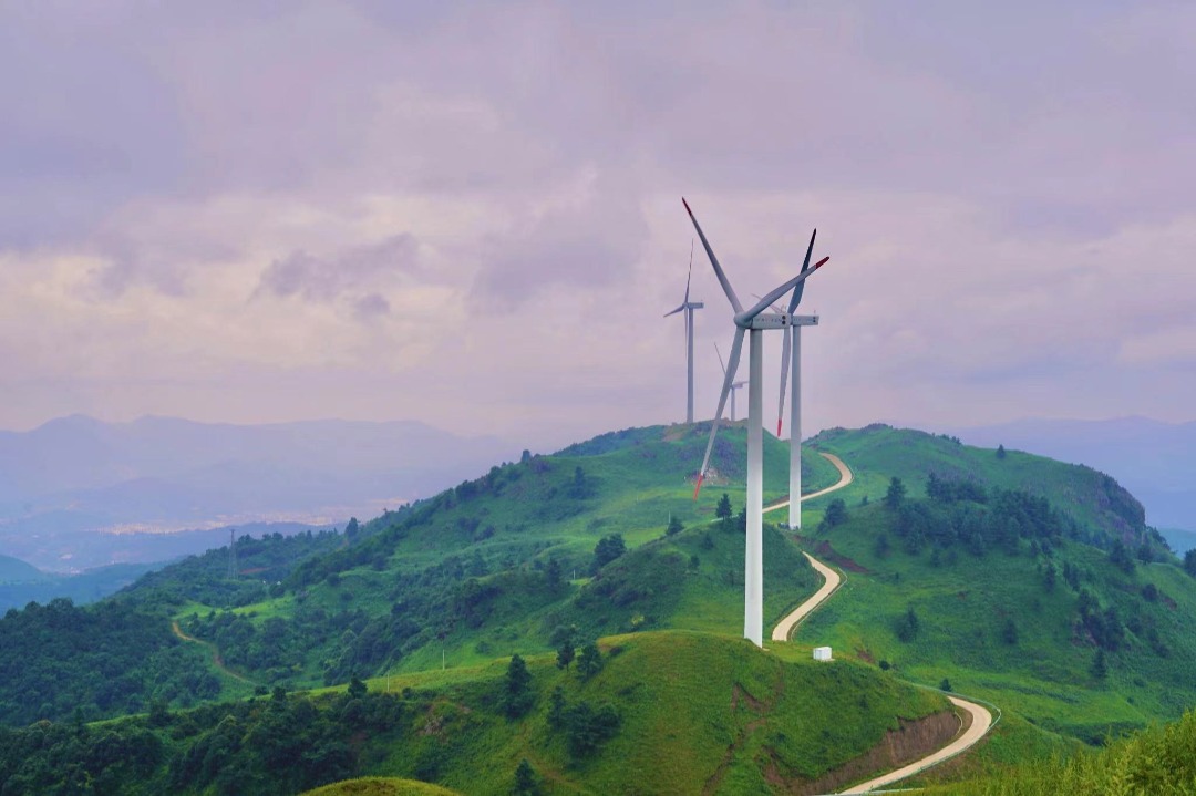 成排风车矗立山脊,日出日落中形成壮丽剪影,夜晚还可拍摄星轨与风车同框的梦幻场景。