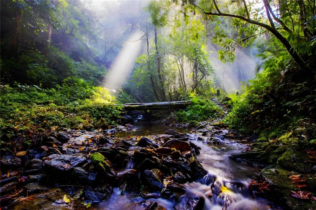 作为观鸟胜地,这里栖息着多种珍稀鸟类,溯溪而上,选一处“宝地”架设起相机,便有机会看到鸟儿出没、捕食、筑巢的珍惜画面。也可以登上山顶,清晨俯瞰云海漫过山林,正午待云散时,层叠绿意铺向天边,随手一拍都是无需滤镜的壁纸。