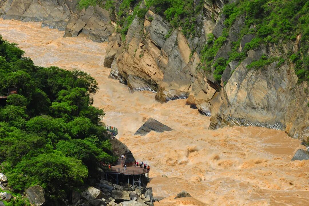 虎跳峡高路被誉为世界十大最美经典徒步路线之一,秋日的虎跳峡,奔涌的江水与两岸的金黄与红褐色的岩壁相互映衬,勾勒出浓烈的秋意。徒步虎跳峡高线,沿途可欣赏到奇特的彩林岩壁,抬头便是哈巴雪山的凝视,转身是玉龙十三峰的守望,脚下江水撞击礁石发出雷鸣般的声响,让身处其中的游人都能感受到大自然的磅礴力量。