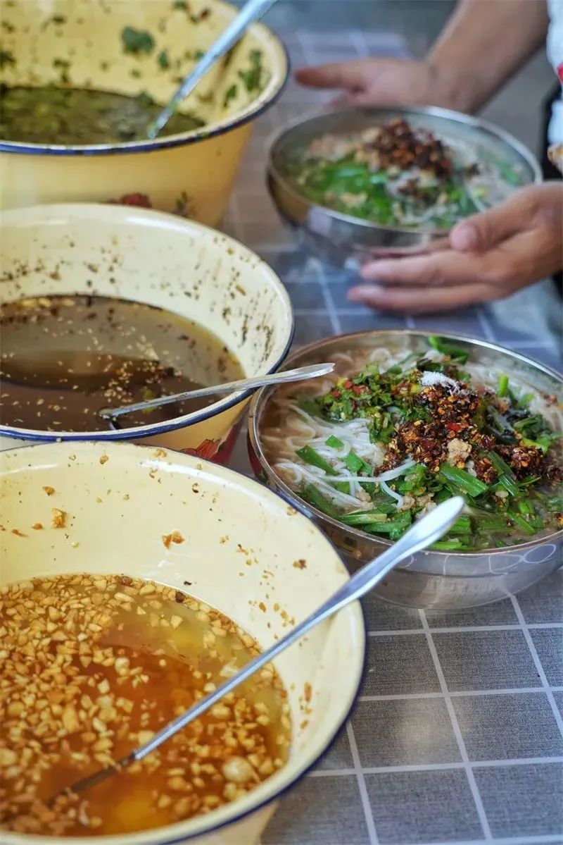 此外,铜锅米线也是楚雄人经典的早餐搭档,烧得火热的小铜锅,加上韭菜、肉沫、大骨汤……让汤汁和米线在锅里完美地融合,翻滚之后,一碗热腾腾的铜锅米线才算真正做好。